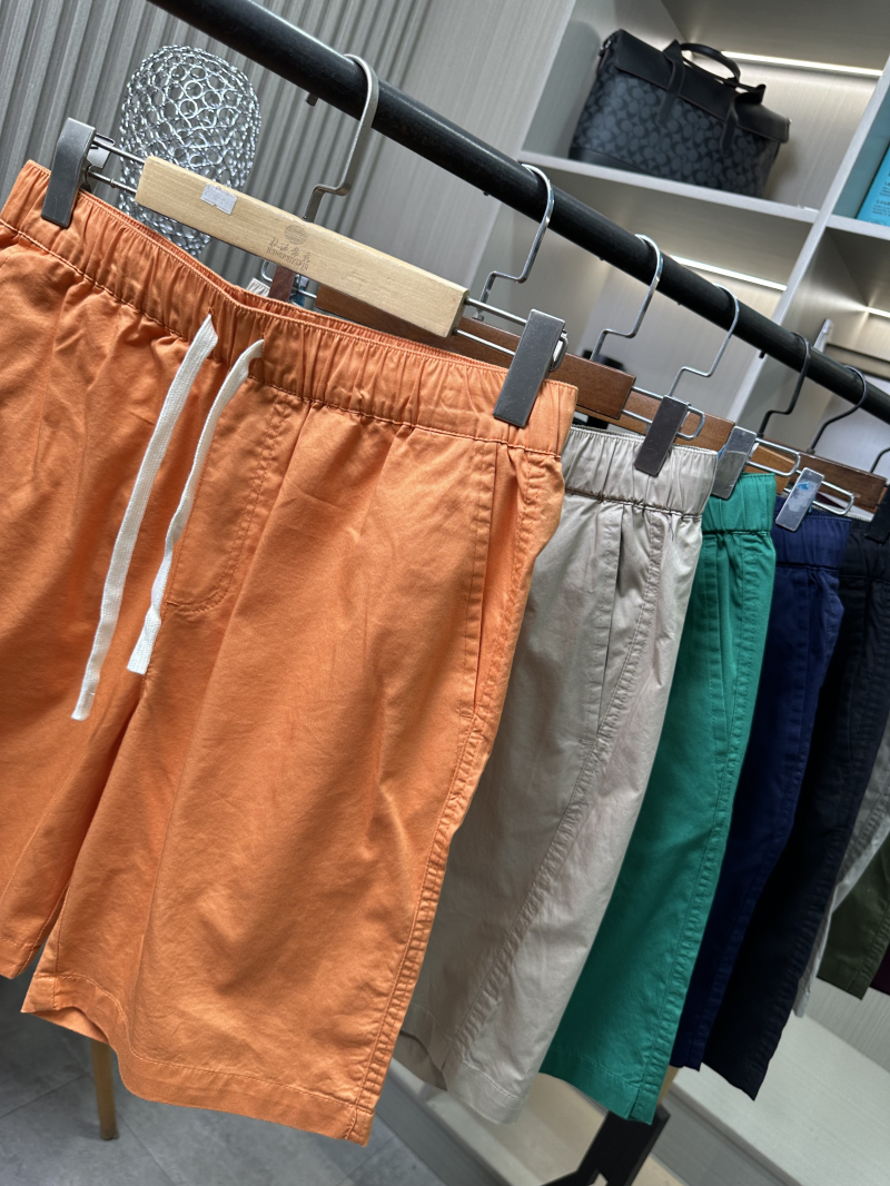 日单试衣间新品薄款快干纯棉松紧腰五分裤男纯色休闲短裤夏季裤子