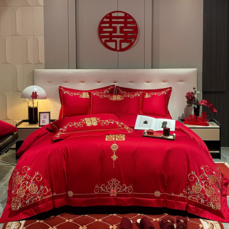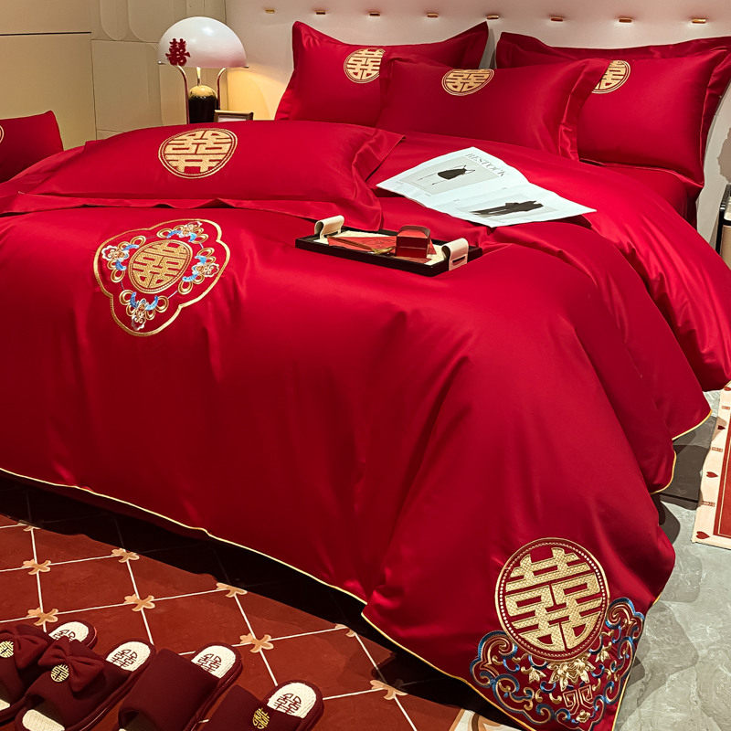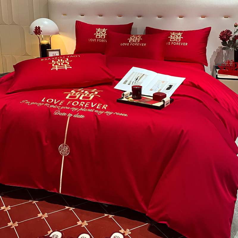 高端纯棉结婚四件套婚庆大红色全棉被套床单喜庆婚嫁简约床上用品
