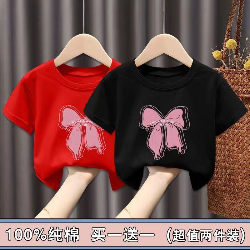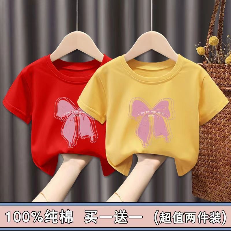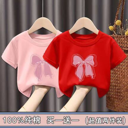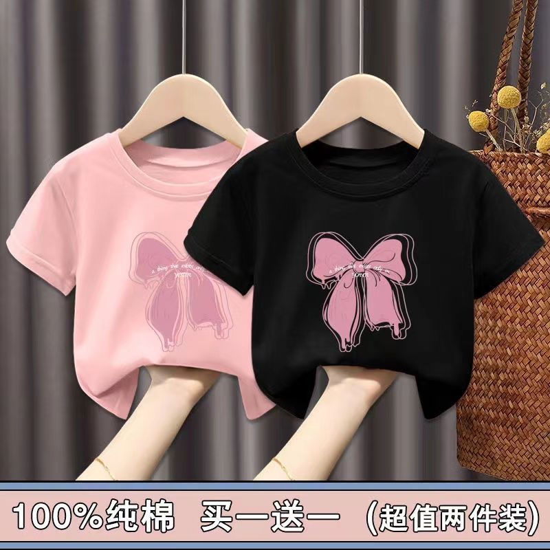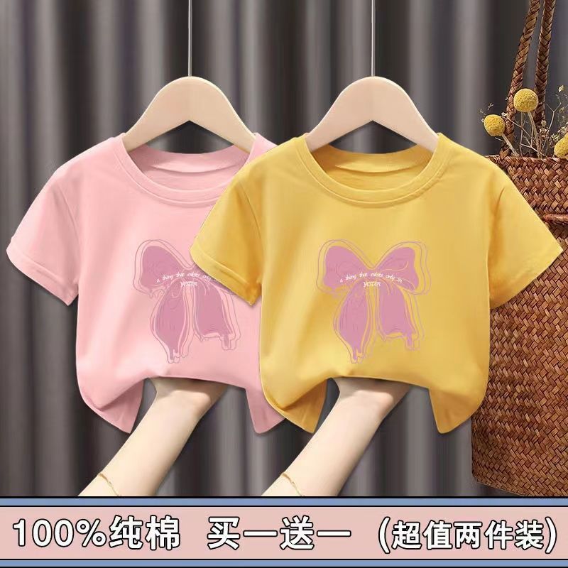 纯棉女童t恤短袖2024新款中小童夏装女宝宝夏季小孩体恤儿童上衣