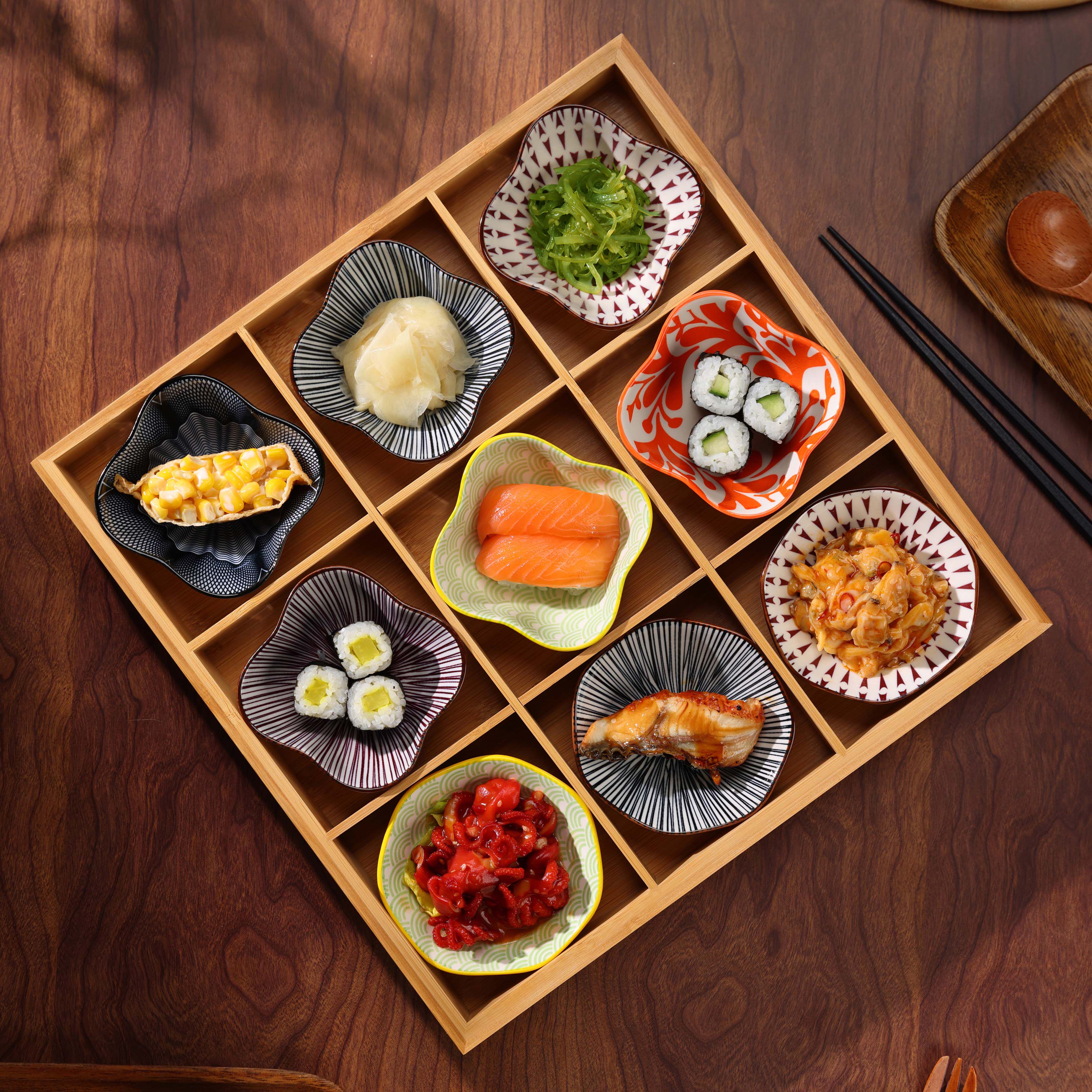 竹木九宫格托盘餐具火锅配菜盘拼盘围炉煮茶果盘零食干果盘木质盘