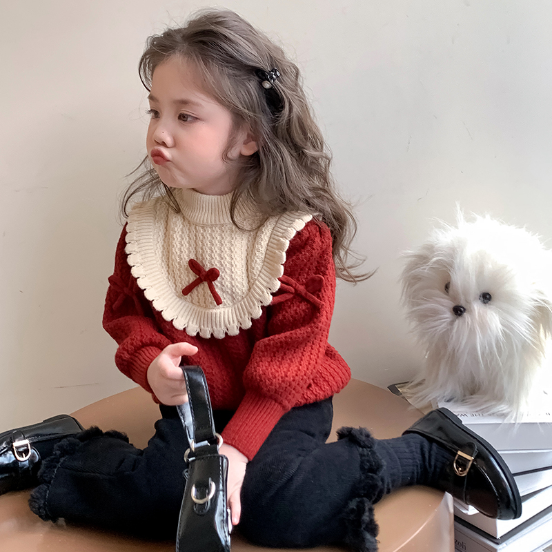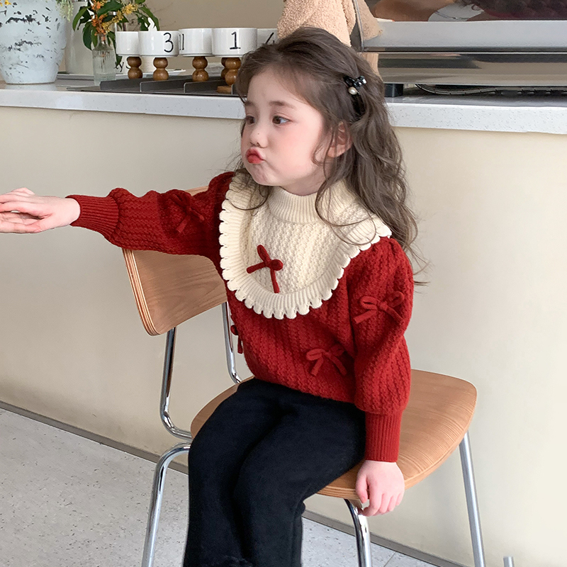 女童毛衣秋冬装2025新款儿童洋气打底衫女宝宝冬季红色针织衫上衣