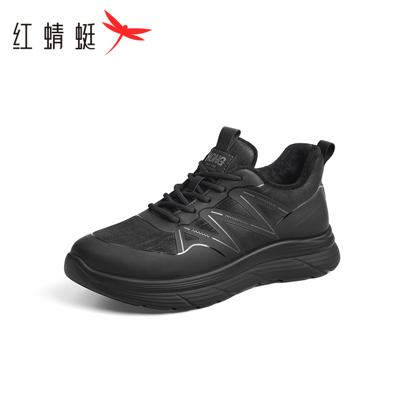 红蜻蜓休闲运动棉鞋秋冬季男鞋加绒运动鞋厚底保暖爸爸鞋跑步鞋男