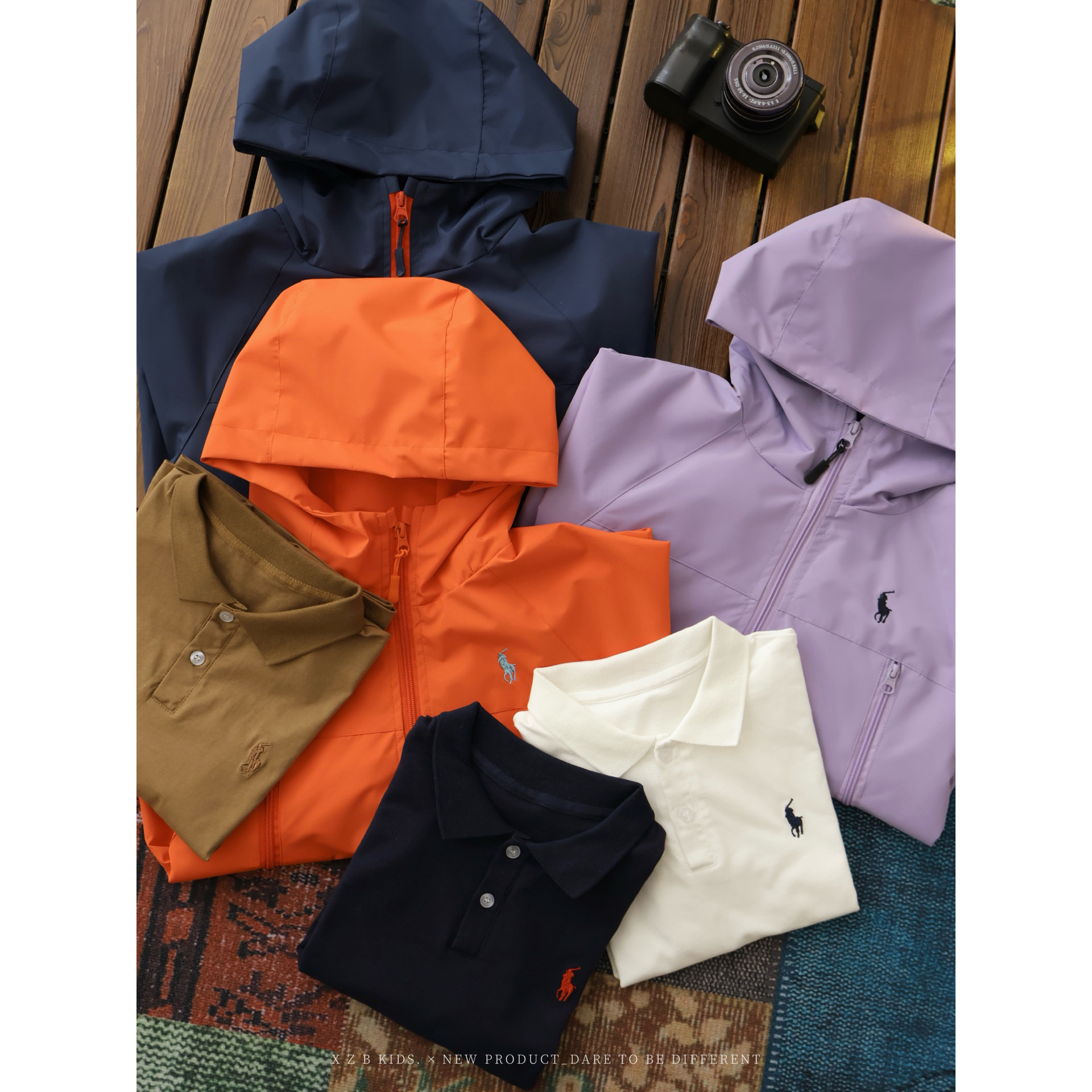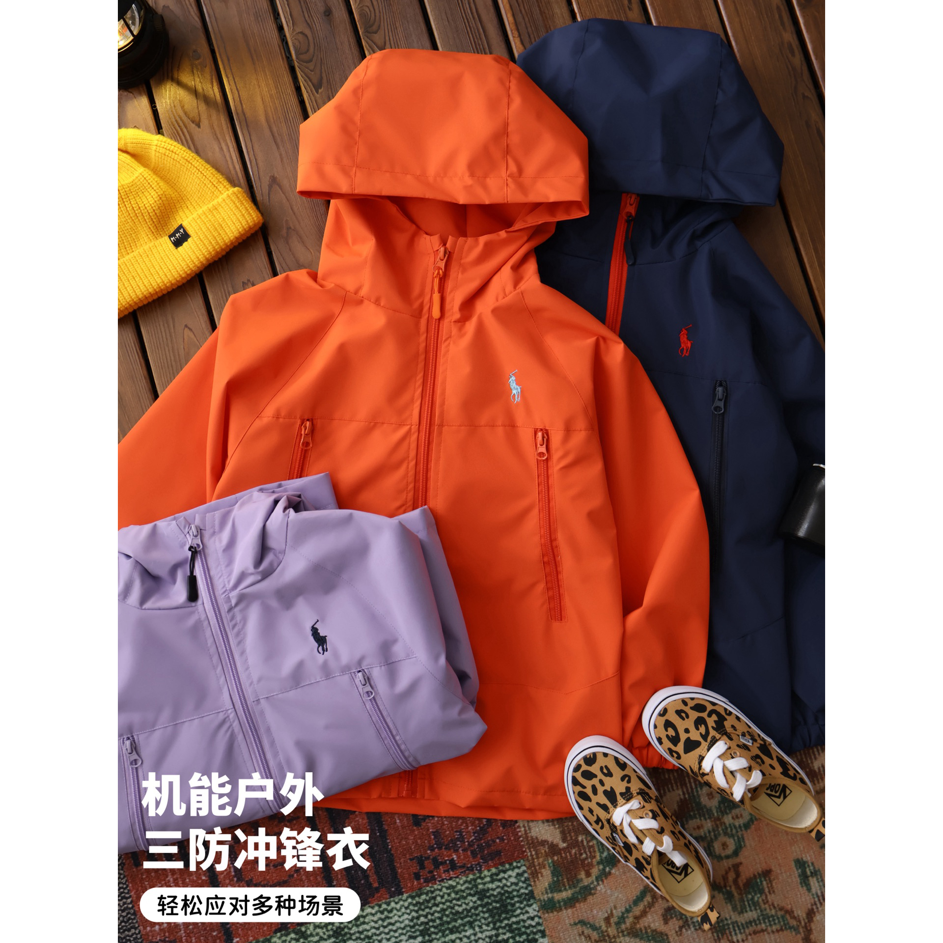 英国保税仓 山系户外防风防泼溅男女童机能连帽冲锋衣+POLO打底衫