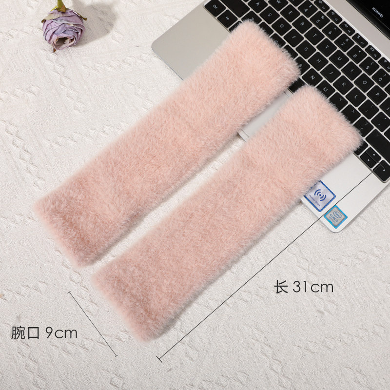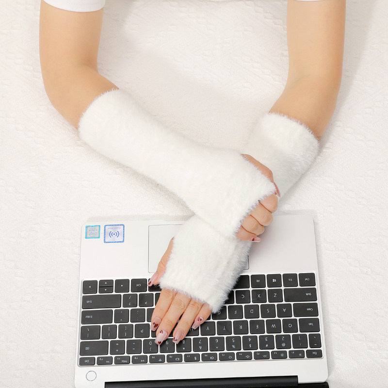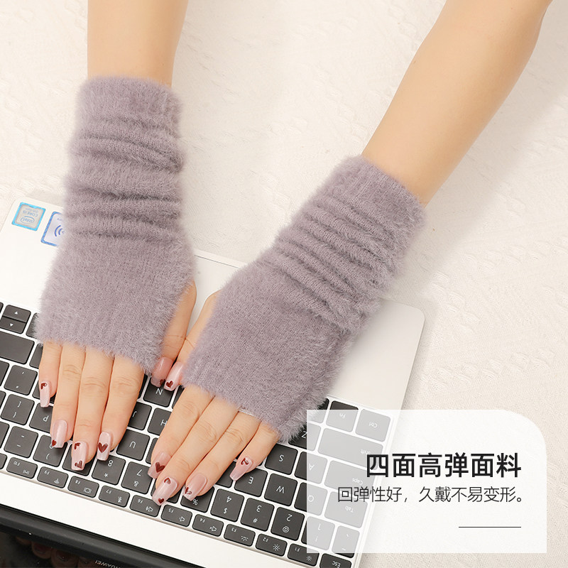 2025秋冬新款毛绒半指手套女冬保暖毛毛露指半截学生写字加厚袖子