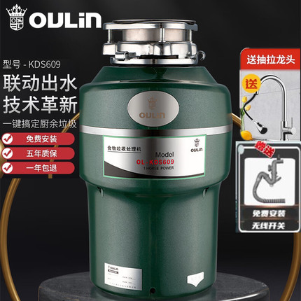 欧琳厨房垃圾处理器KDS609水联动全自动进水厨余垃圾处理器粉碎机