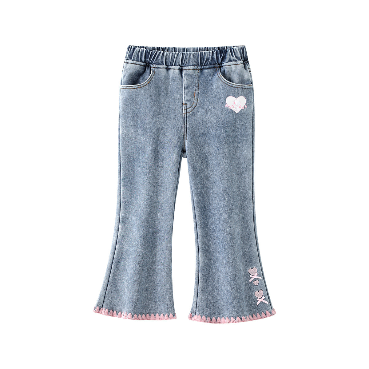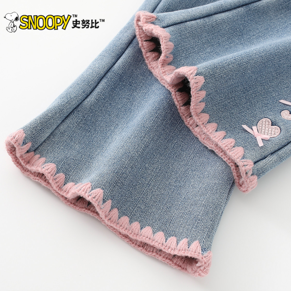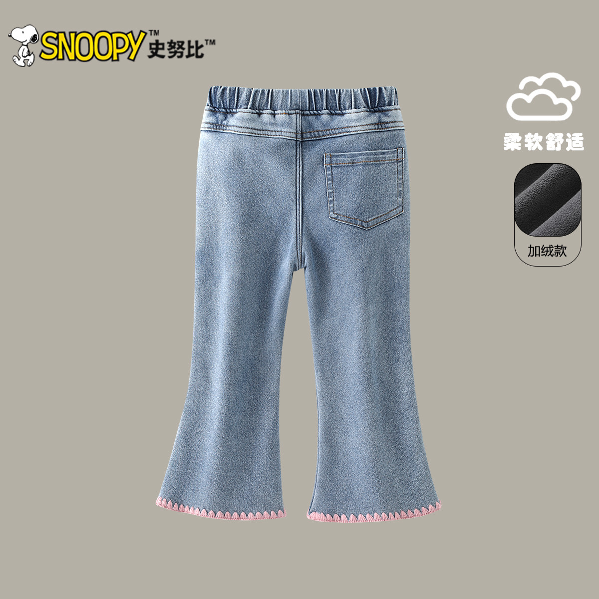 史努比女童牛仔裤秋冬2025新款女宝宝加绒喇叭裤儿童冬装保暖裤子