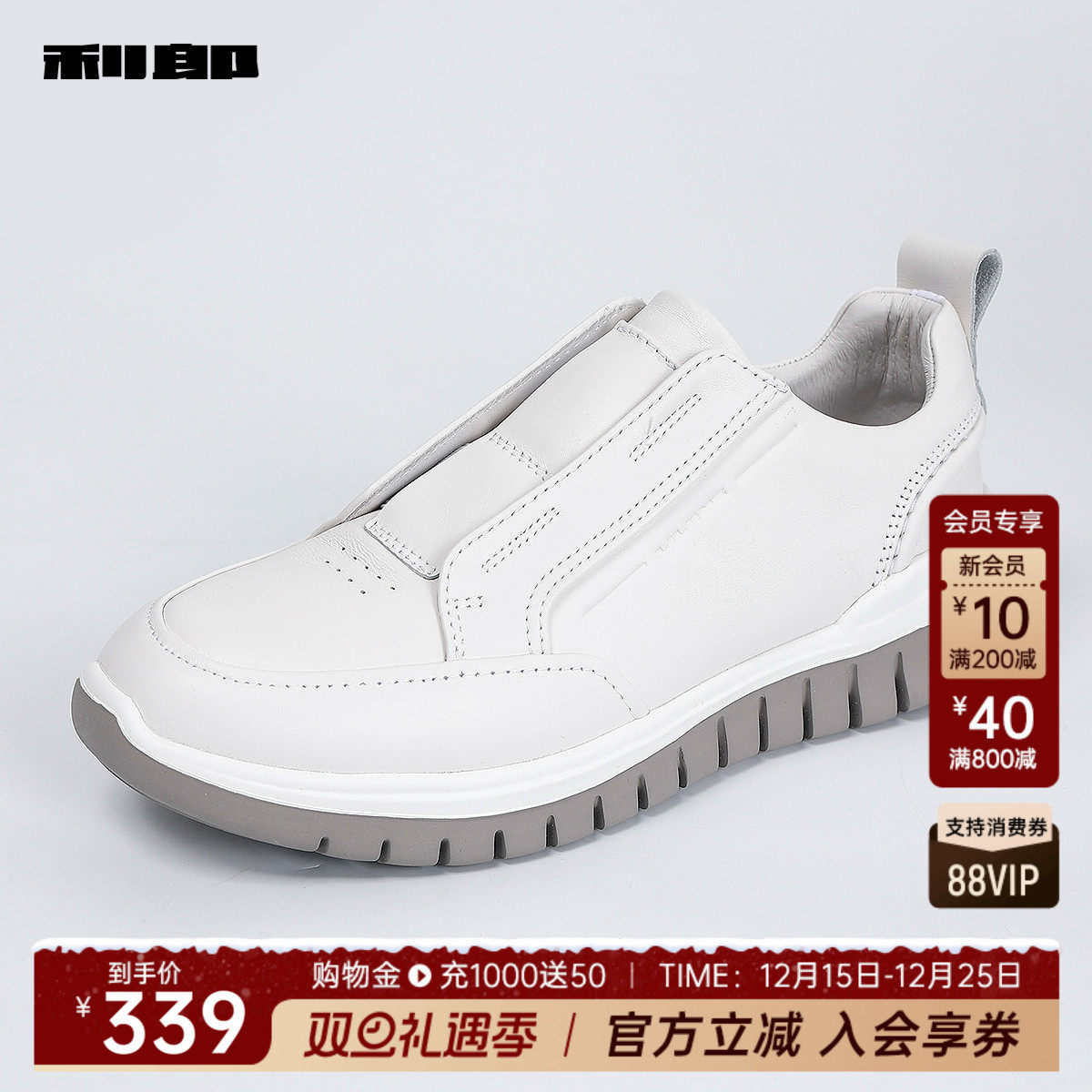 利郎奥莱 牛皮革休闲鞋男士一脚蹬时尚2025秋季户外小白鞋鞋子男