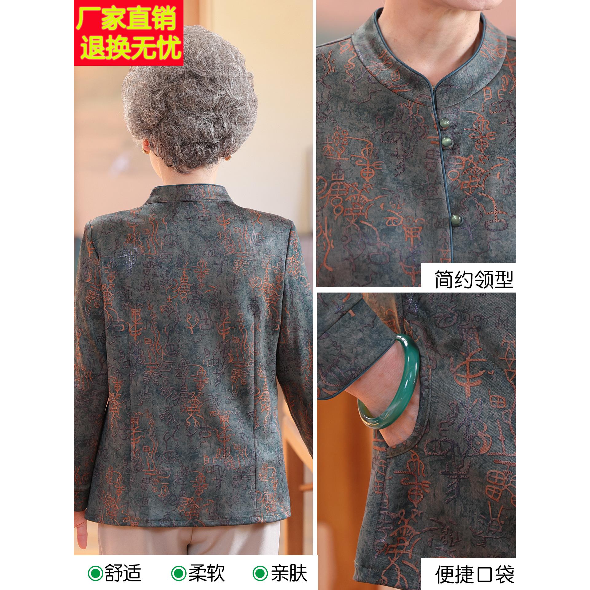 老太太秋装奶奶衬衫长袖妈妈圆领上衣中老年女装70岁大码老人外套