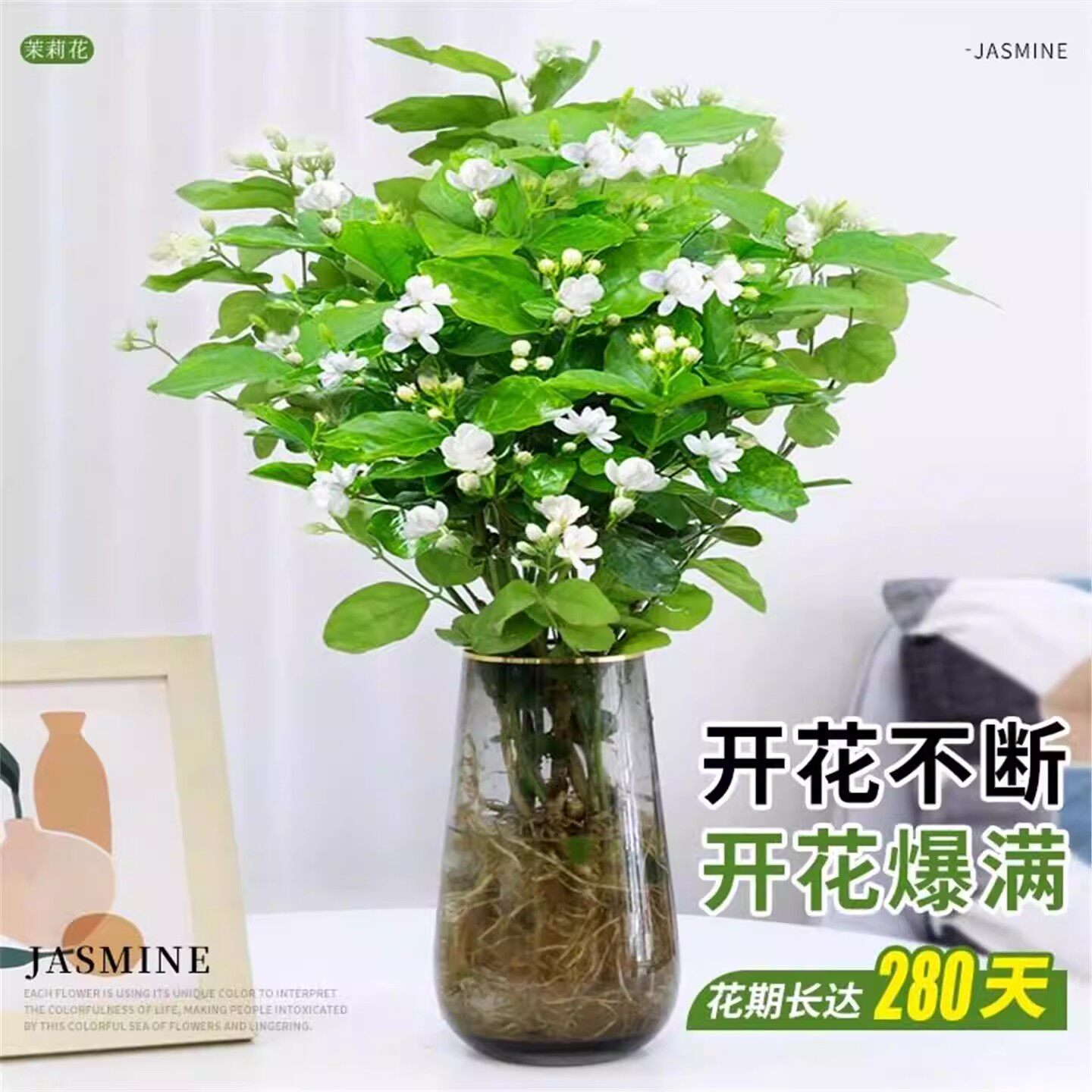 茉莉花水培植物盆栽带花苞办公室内桌面好养懒人鲜花绿植水养花卉