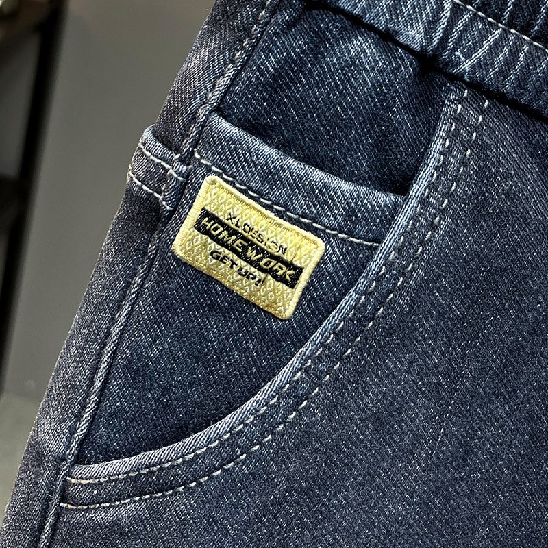 系带牛仔裤男秋冬款男士加绒裤2025冬季新款松紧腰加厚休闲长裤子