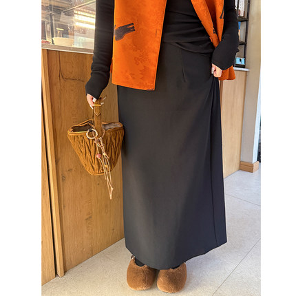 胖mm秋冬简约直筒半身裙木子理想大码女装后开叉藏肉显瘦品质半裙