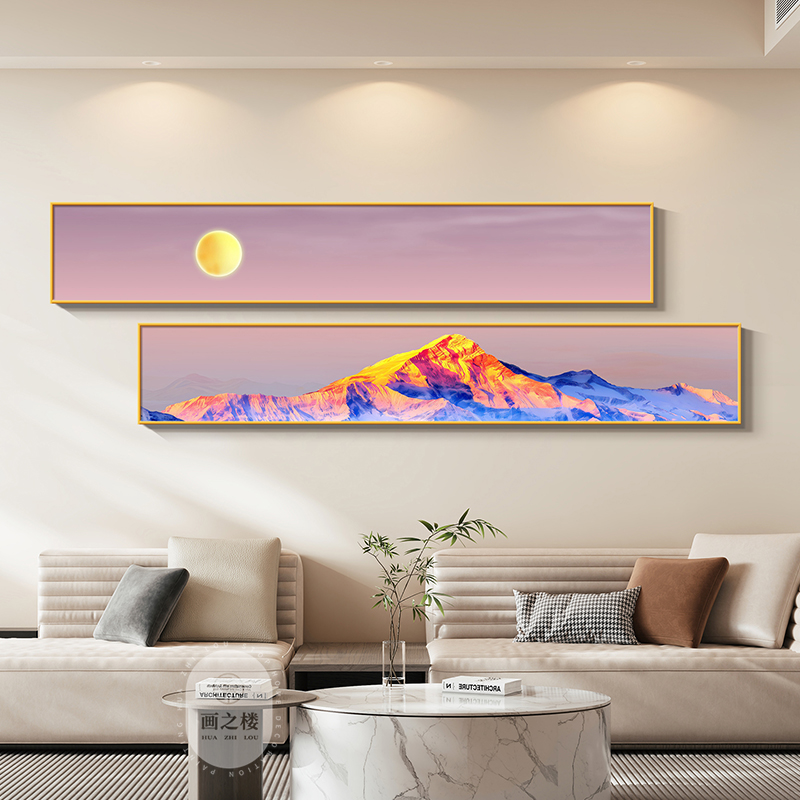 日照金山沙发背景墙装饰画轻奢高端客厅挂画2025新款细长条组合画