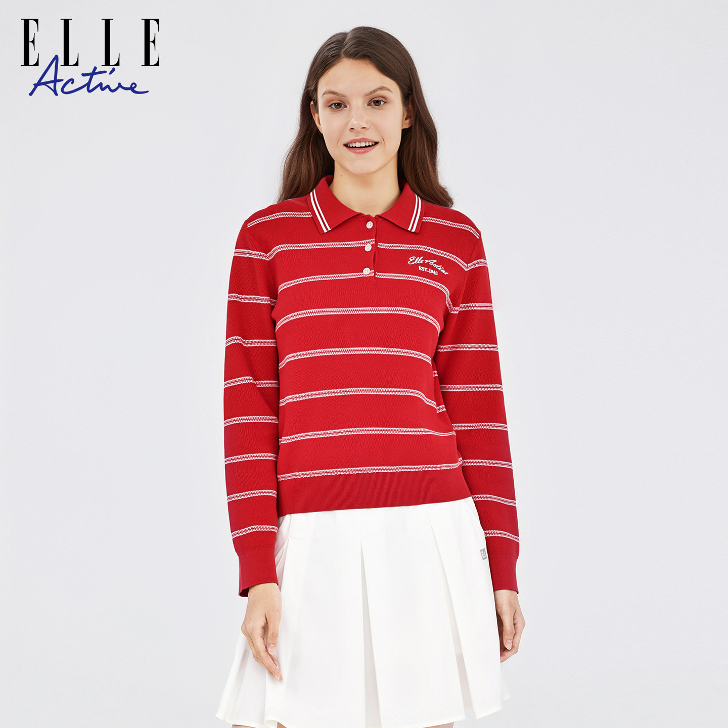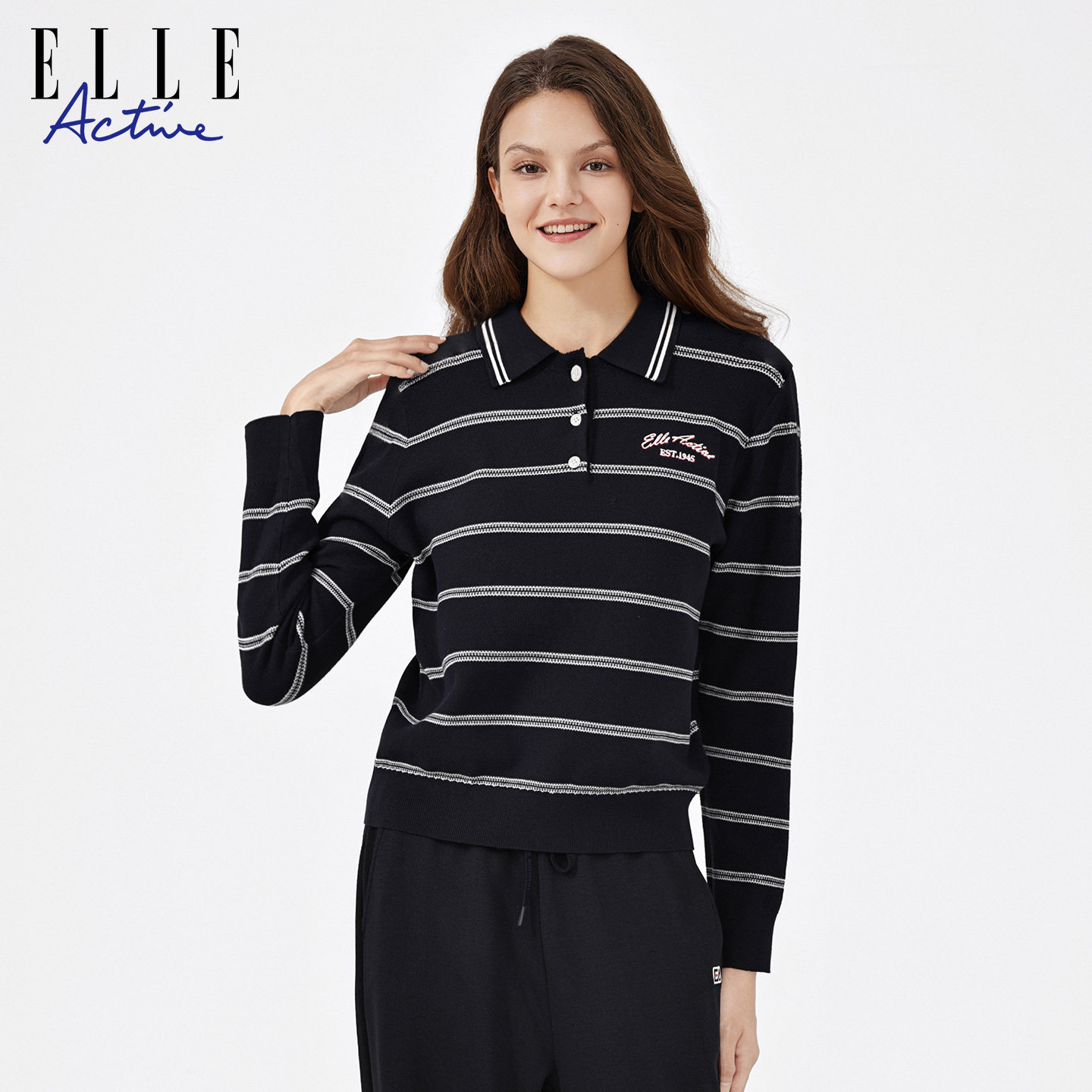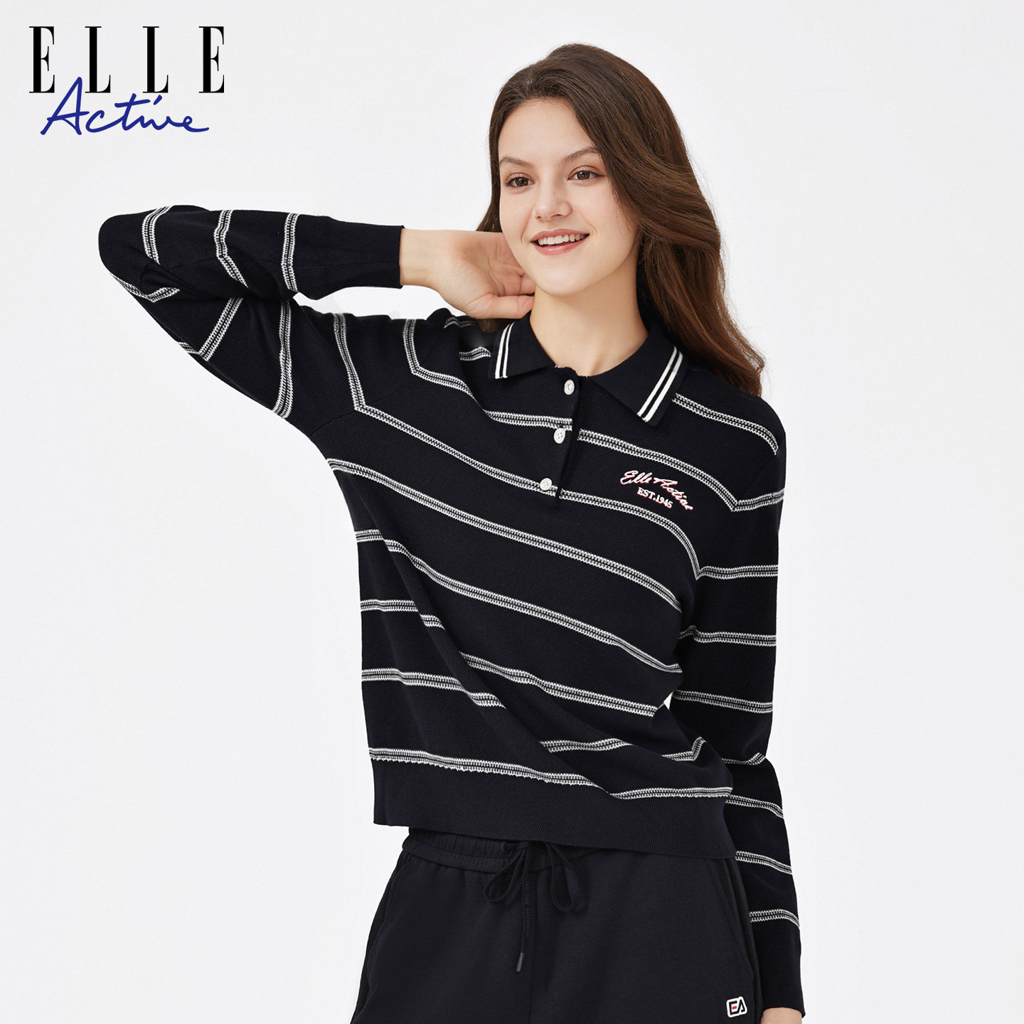 ELLEActive条纹针织polo衫
