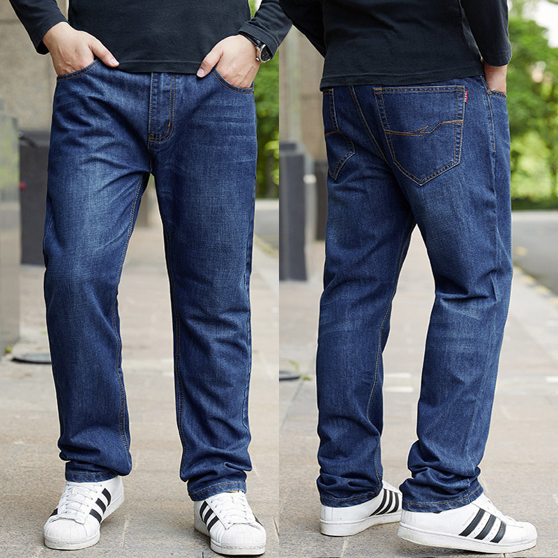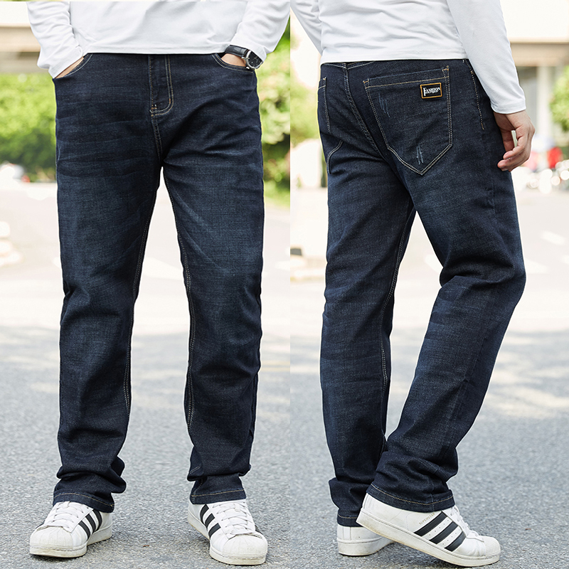 秋冬款男士牛仔裤高腰弹力加肥加大码肥佬胖子超大码宽松直筒长裤