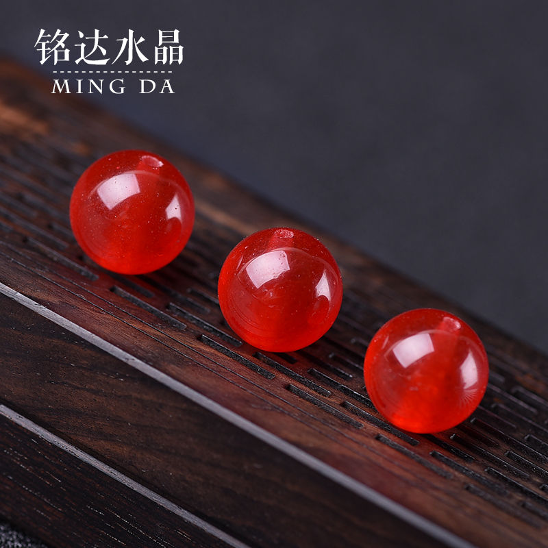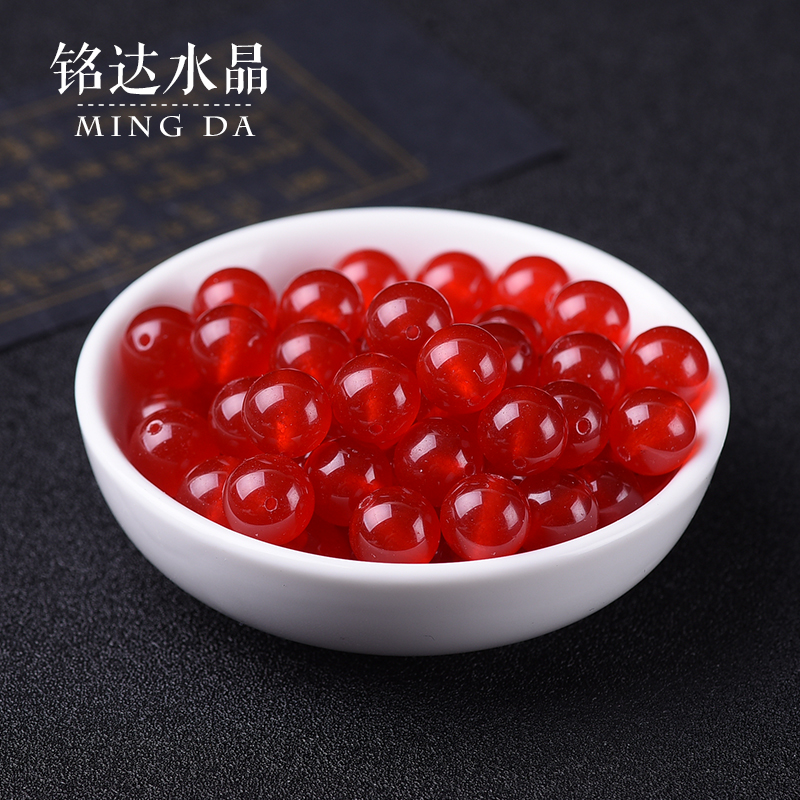 6A级红玉髓散珠子半成品石英岩玉DIY手工串珠编织红色手链项链配
