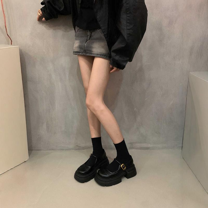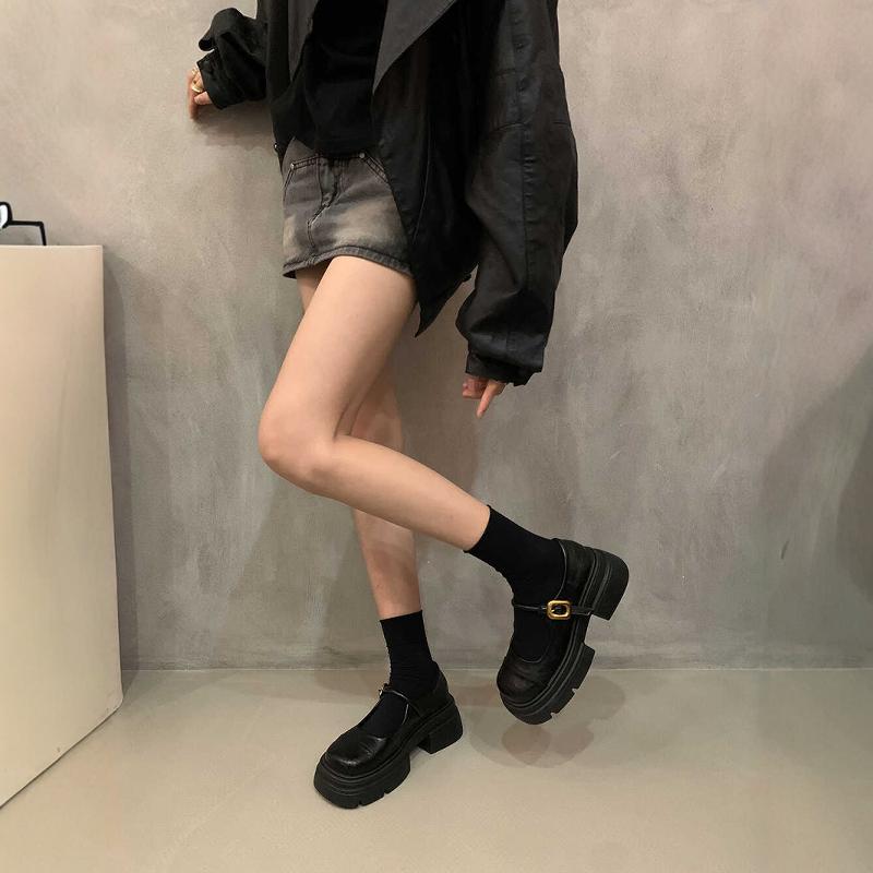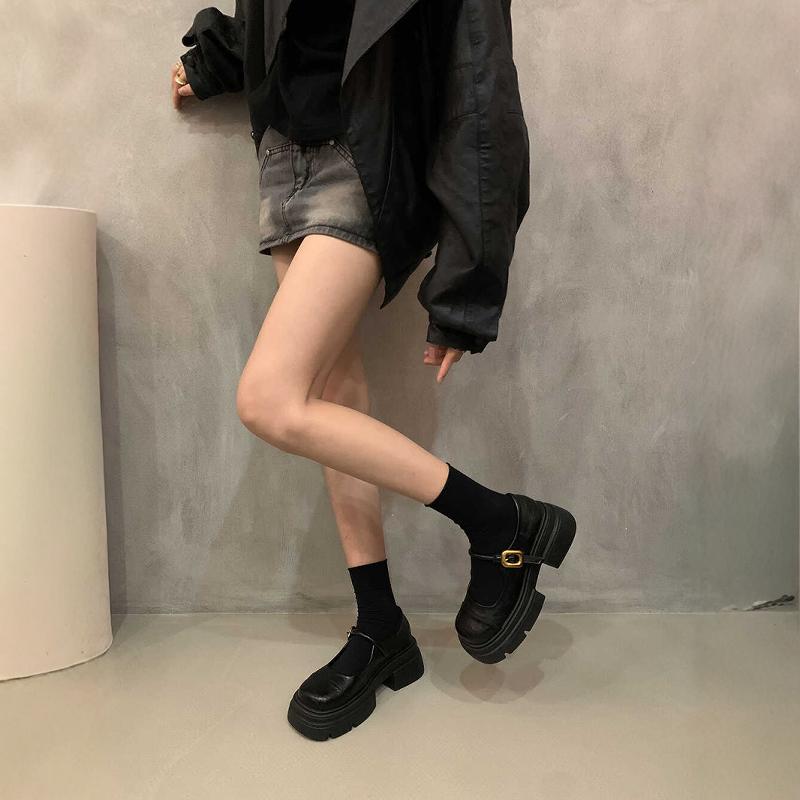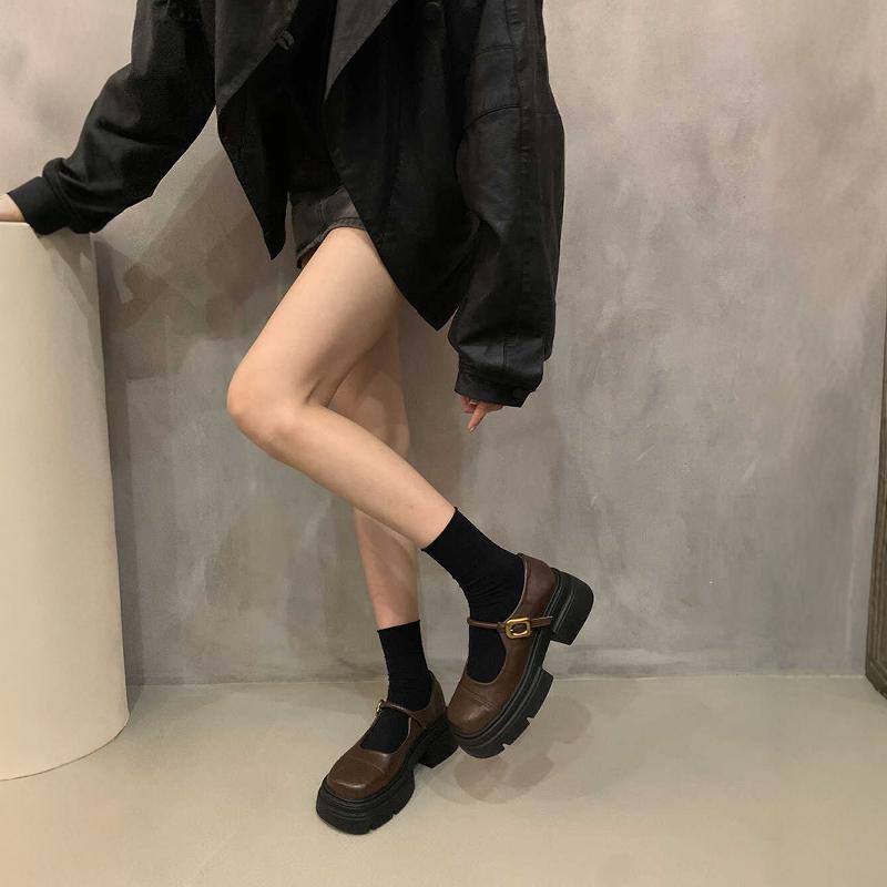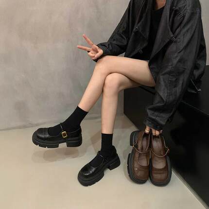 潮牌法式复古黑色玛丽珍鞋厚底小皮鞋早秋款粗跟女鞋子单鞋乐福鞋