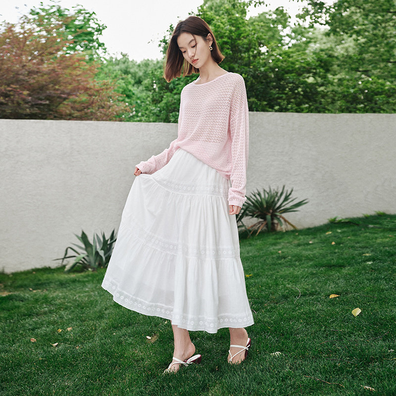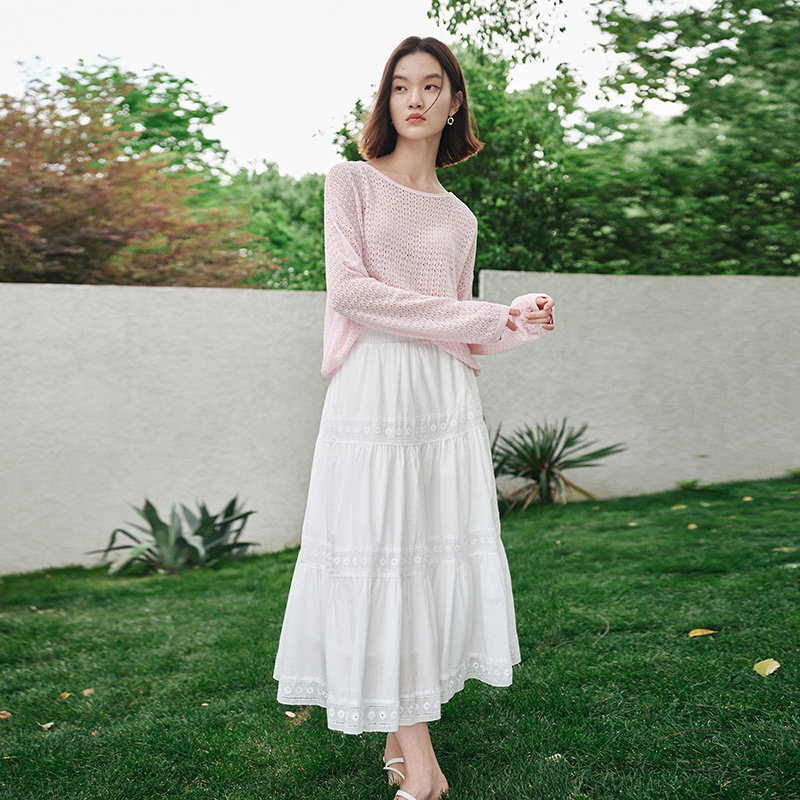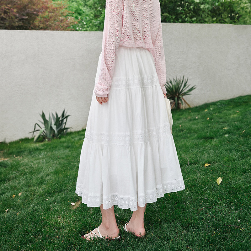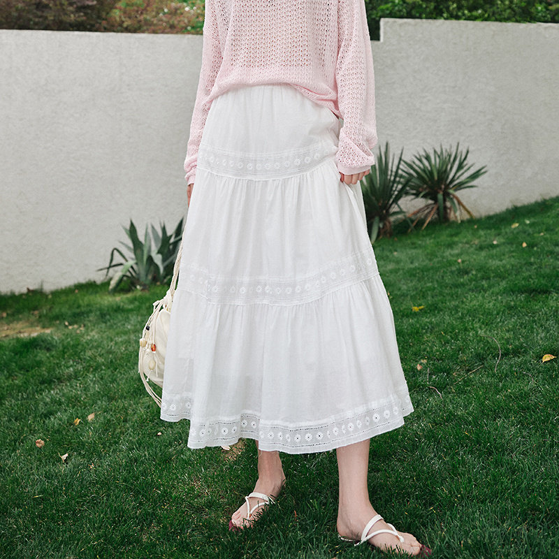 优雅森系白色仙女裙显瘦MOFAN摩凡夏新款浪漫镂空花纹高腰半身裙