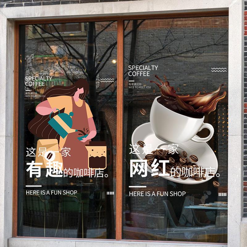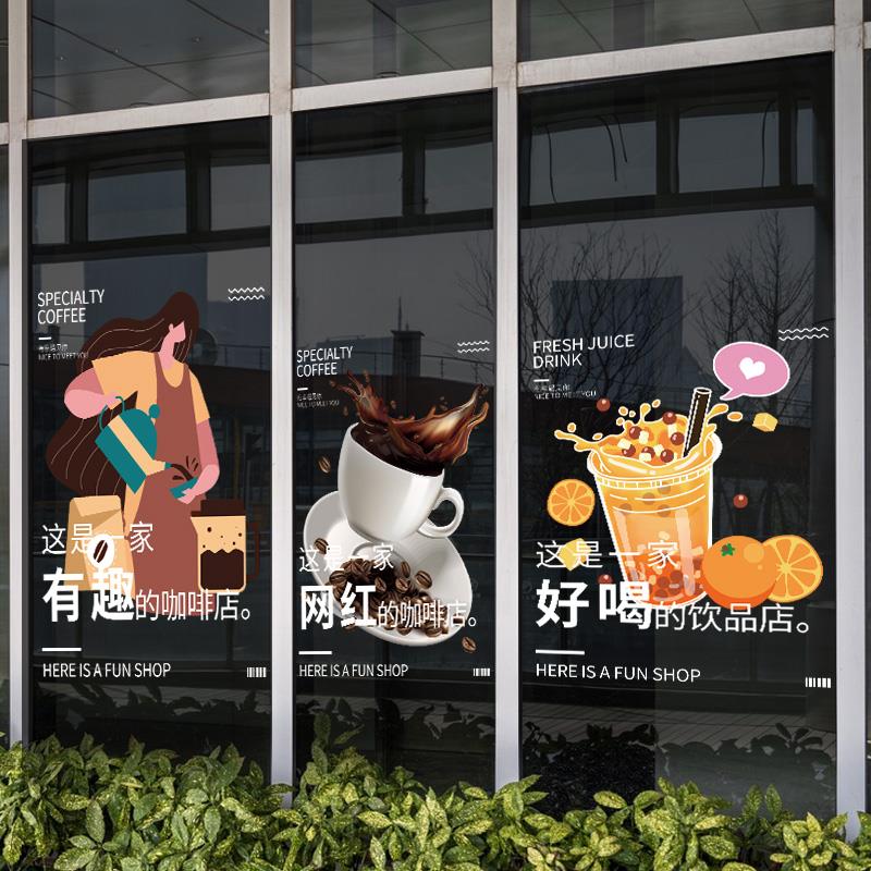 奶茶店玻璃门贴纸网红冷饮果茶咖啡店铺橱窗装饰布置广告静电贴画