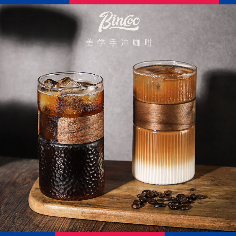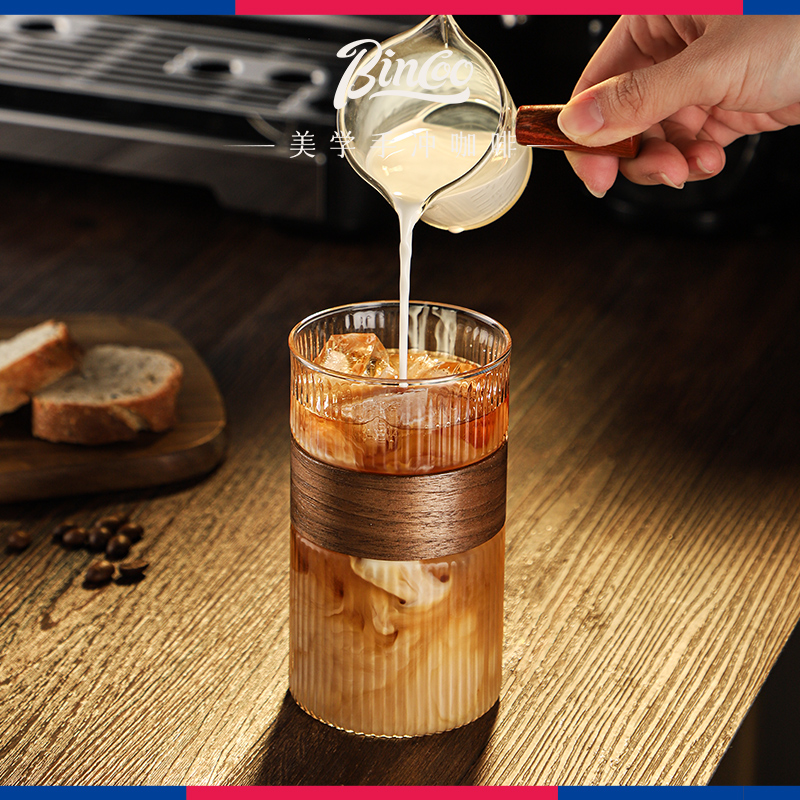 Bincoo玻璃咖啡杯日式挂耳滤纸专用分享壶美式拿铁竖纹水杯子家用