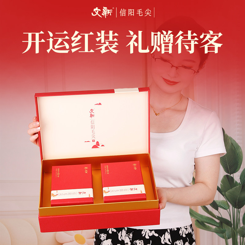 文新信阳毛尖茶叶绿茶2025新茶高山雨前春茶年货送长辈礼盒装250g