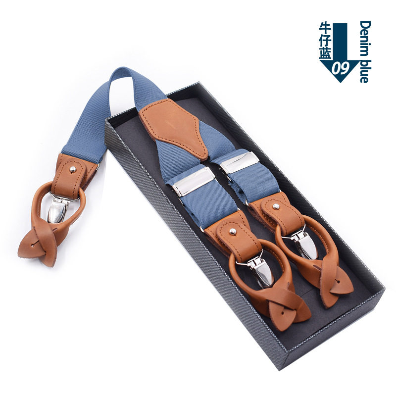 工作潮男士6夹纽扣眼背带夹成人胖人夹子钮扣两用防滑真皮吊裤带