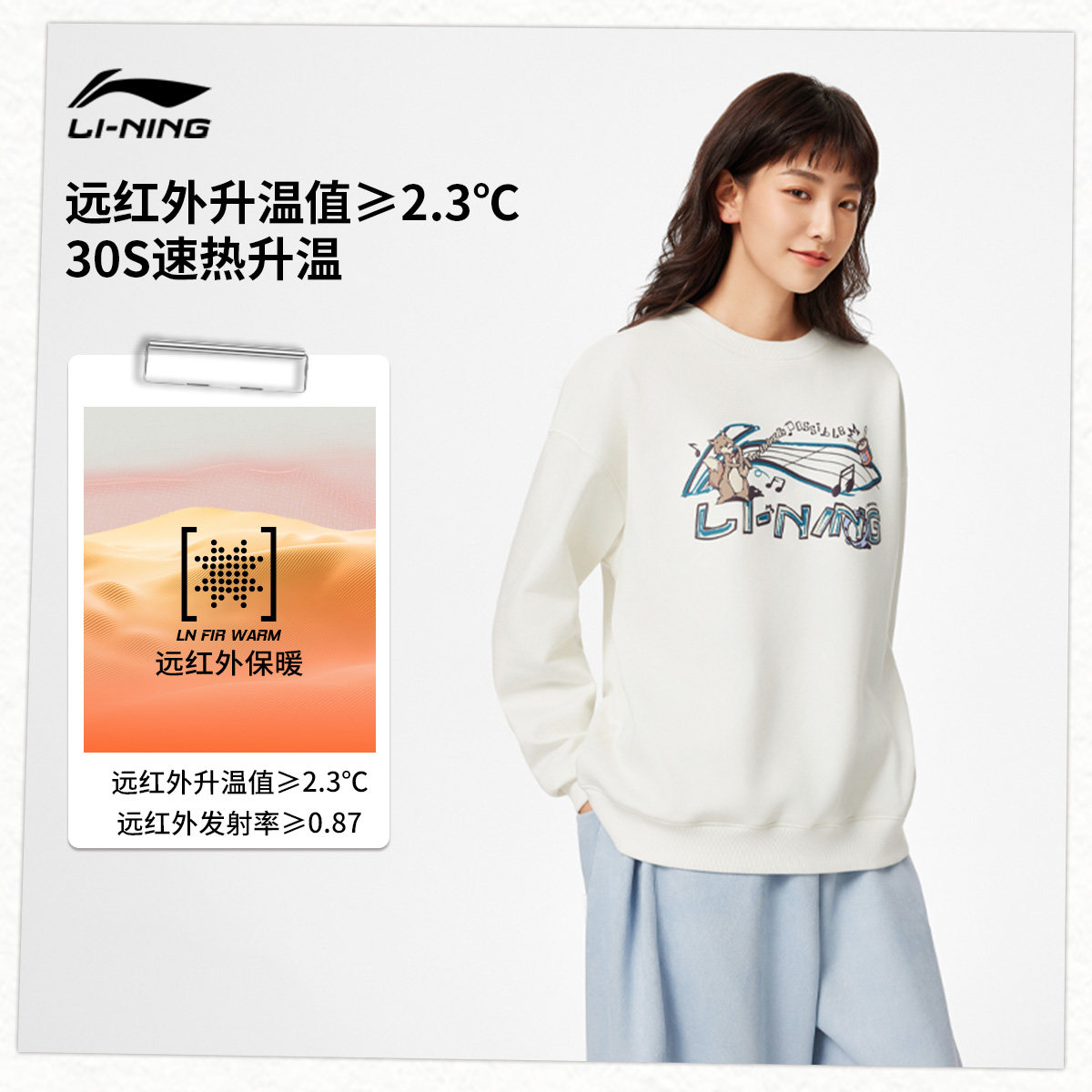 李宁卫衣女士秋季百搭新款圆领长袖上衣加绒保暖套头衫运动服女装