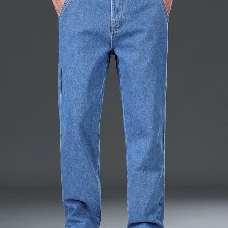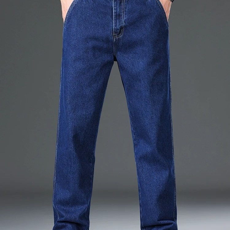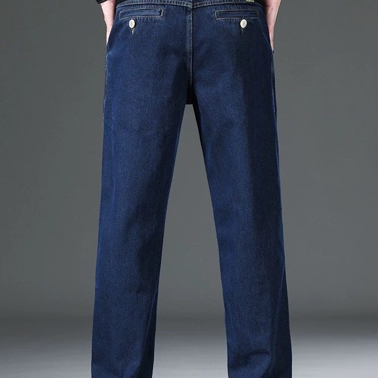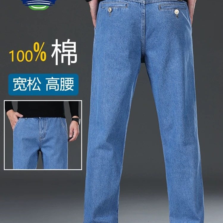 夏季正品苹果薄款牛仔裤男宽松直筒经典高腰斜口袋纯棉中老年长裤