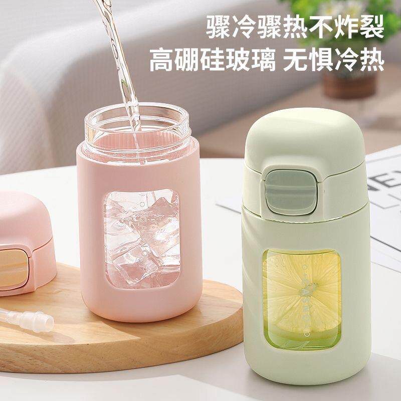 吸管玻璃水杯女高颜值防摔耐热耐高温带刻度小巧可爱便携喝水杯子