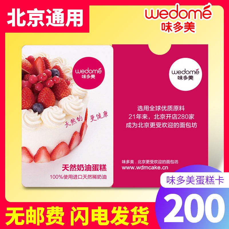 礼券味多美蛋糕卡200面值代金券现金卡北京通用红卡礼品卡提货券