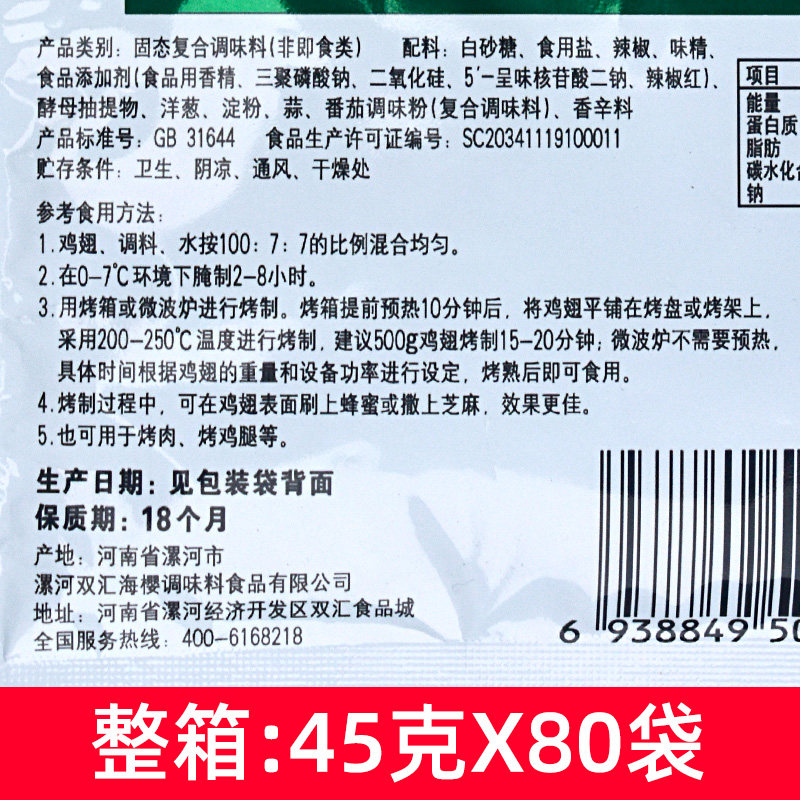 双汇奥尔良风味腌料45g香辣烤鸡翅专用蜜汁香辣烤肉烧烤调料