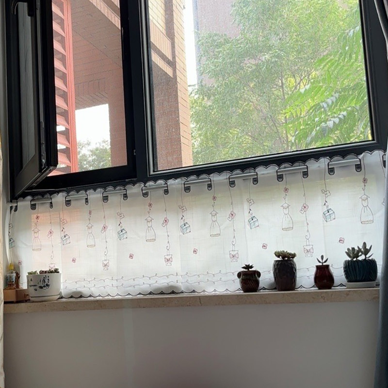 可爱刺绣遮光小窗户半截纱帘飘窗短窗帘厨房短帘半帘咖啡帘新款