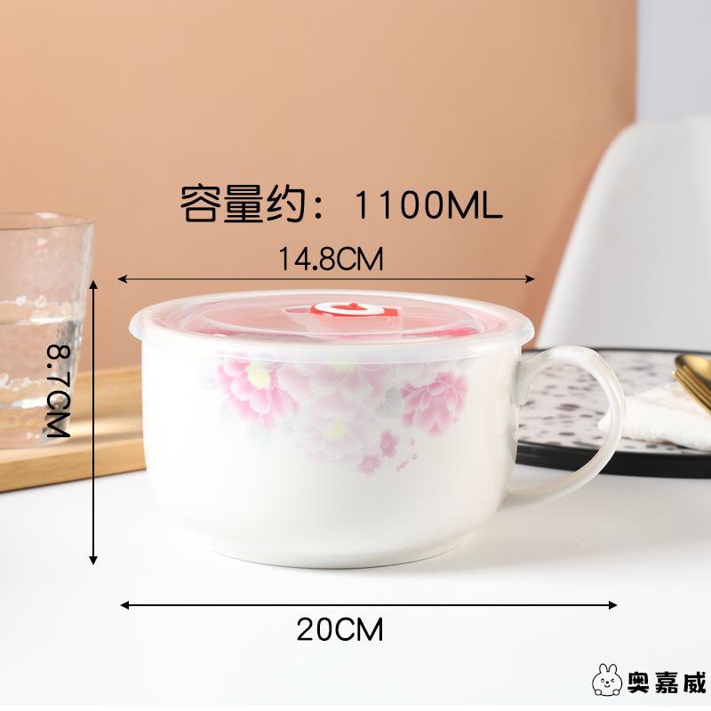 陶瓷饭盒带盖微波炉专用宿舍大号带把饭碗保鲜杯碗可加热上班族用