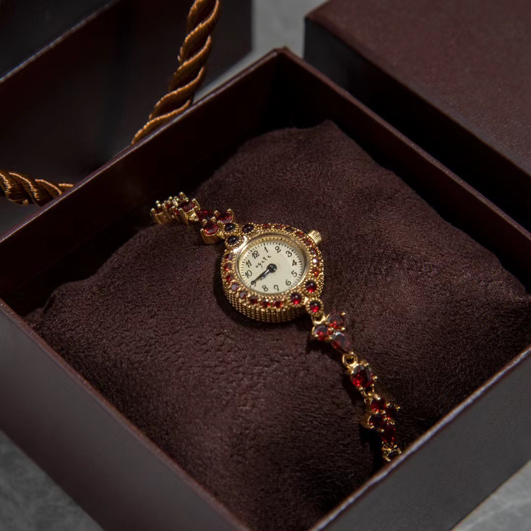 日系轻奢agete天然石榴石流苏手链表vintage mini盘手链式中古表