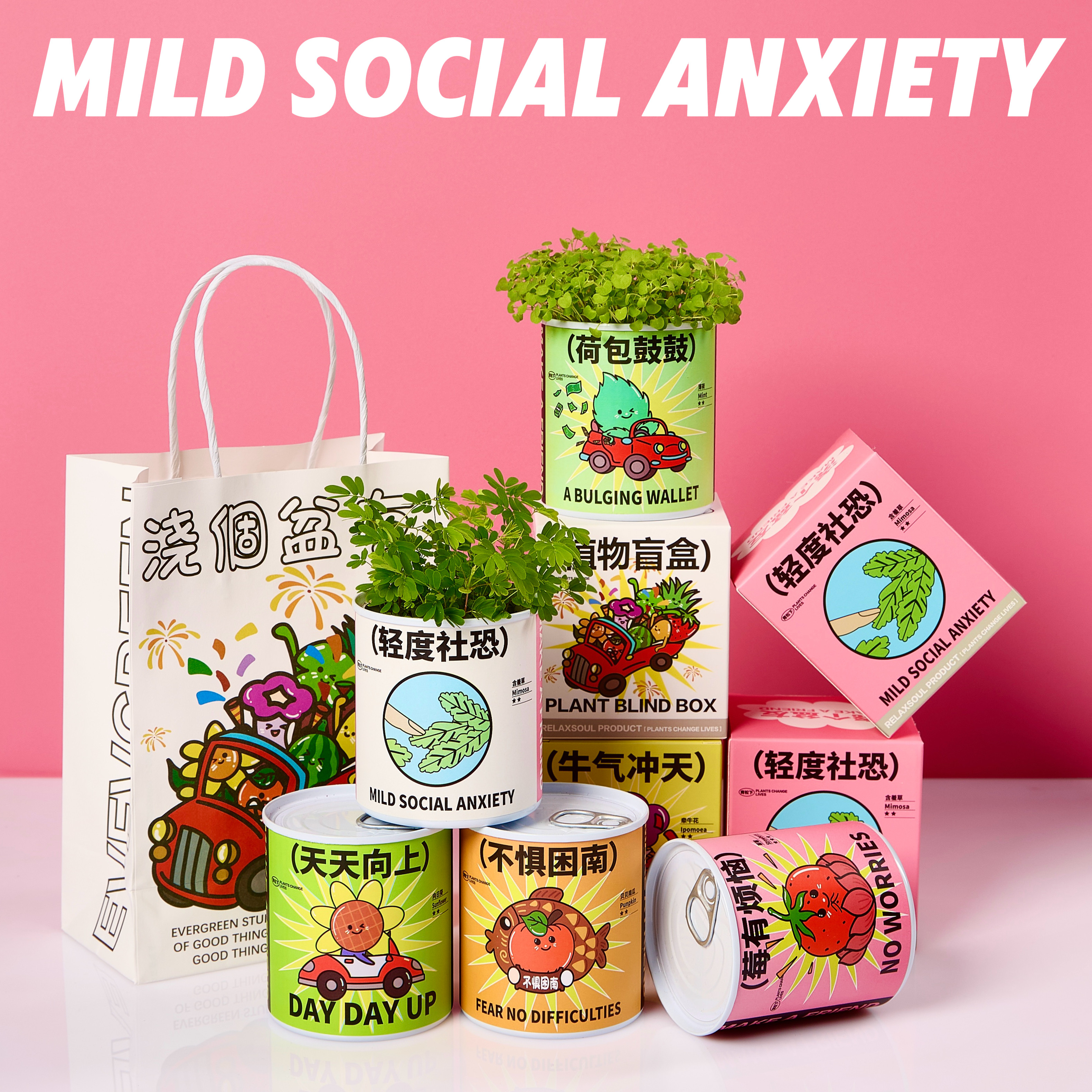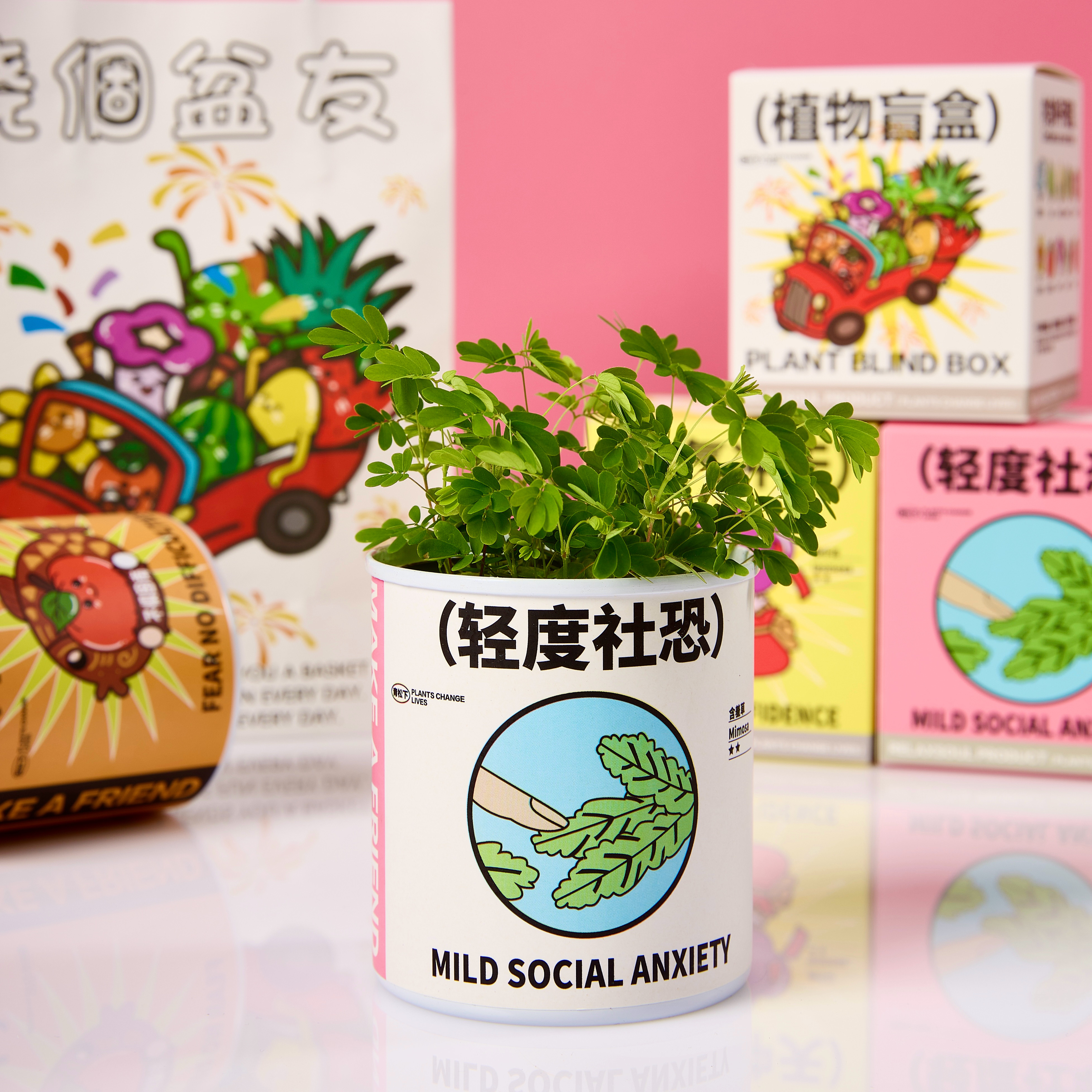 青松下-含羞草盆栽植物罐头创意教室办公室桌面绿幼儿园公司礼物