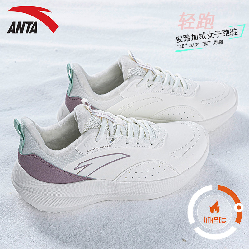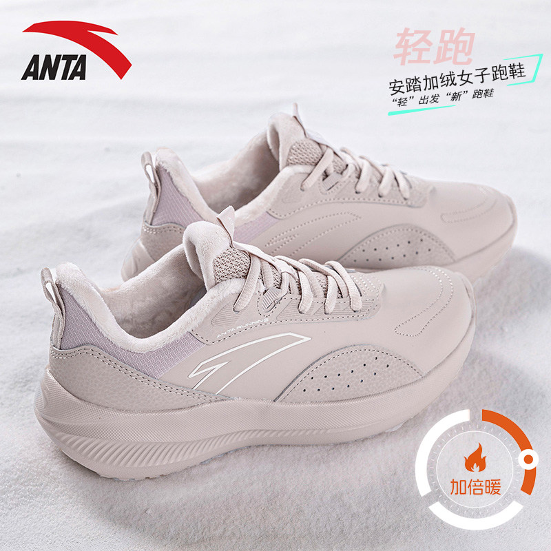 安踏女鞋冬季加绒保暖鞋子跑步鞋秋冬软底休闲鞋官方旗舰运动鞋女