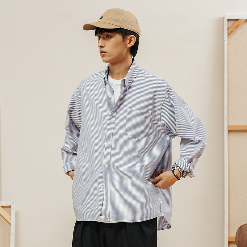 VMCL 浅蓝色免烫抗皱条纹宽松廓形长袖衬衫男女秋21AW vermicelli