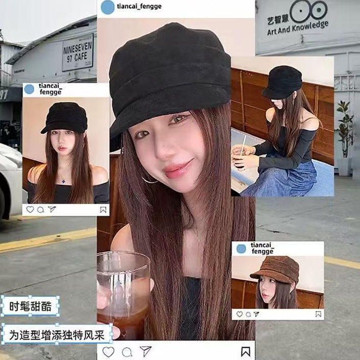 麂皮绒褶皱马术平顶帽女秋冬2025新款复古做旧休闲报童帽贝雷帽子