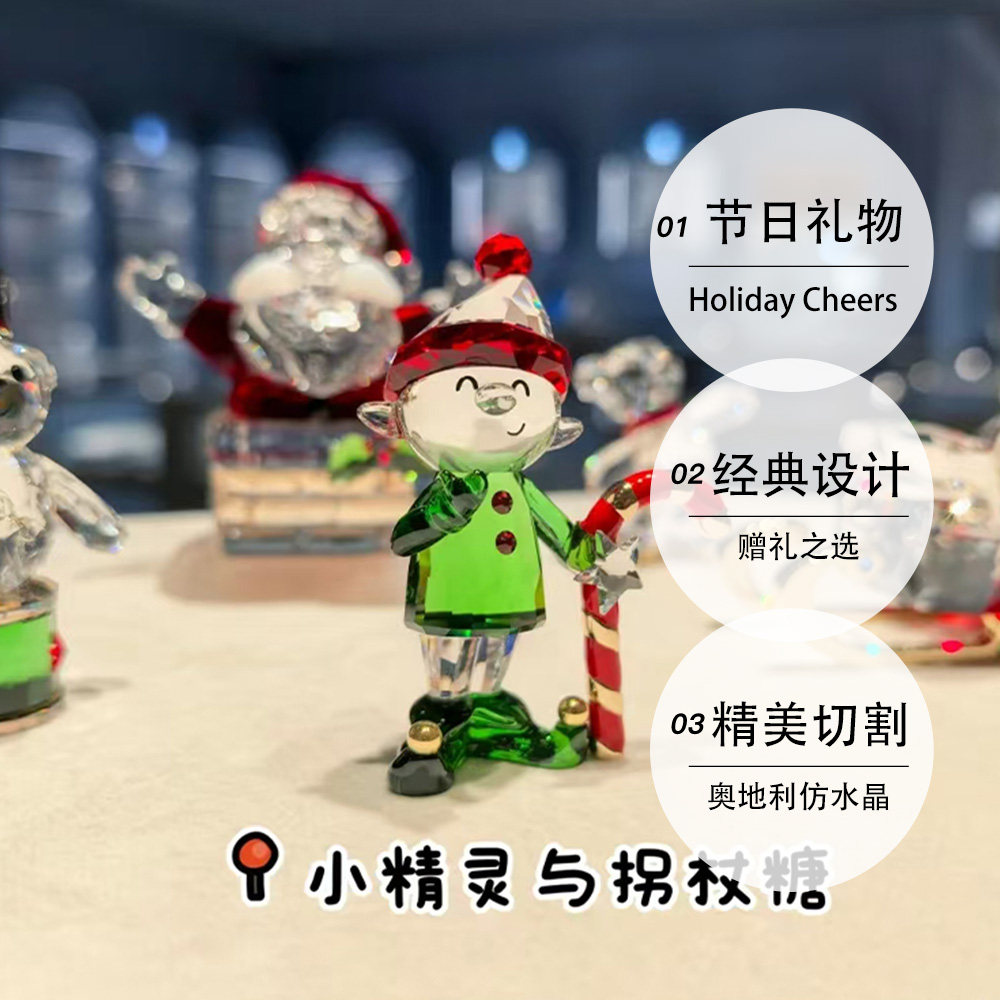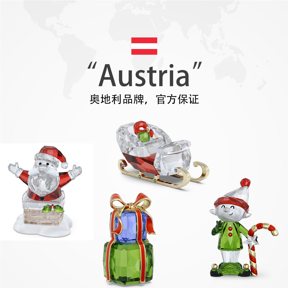 【自营】施华洛世奇圣诞老人精灵礼物雪橇车摆件家居送节日礼物