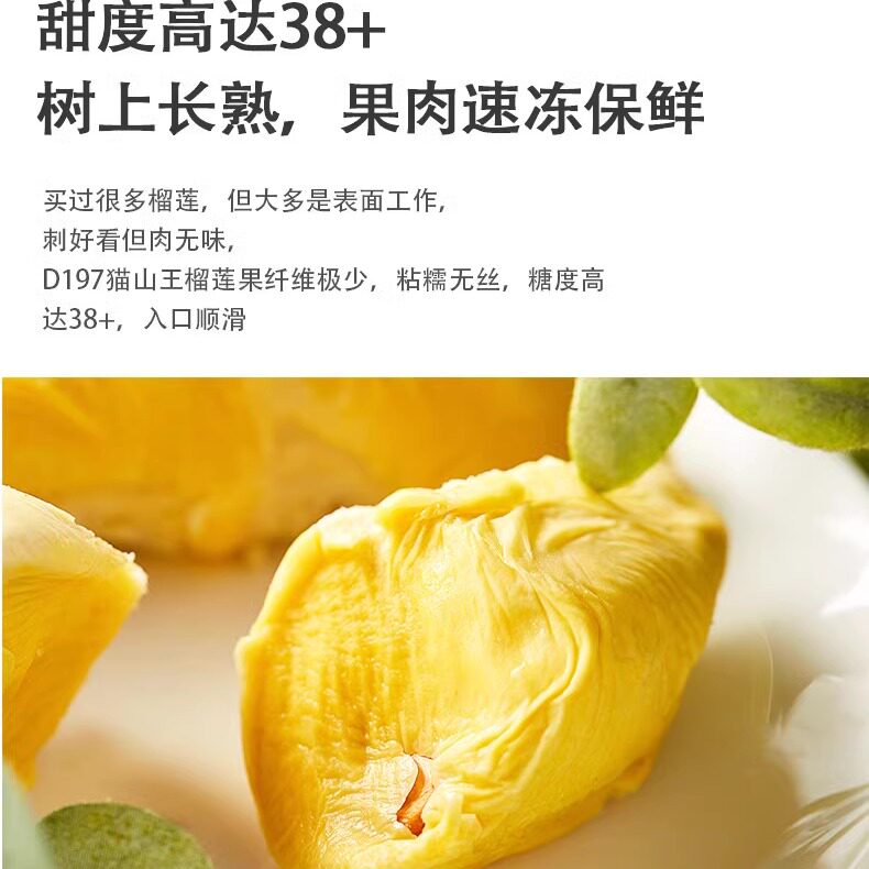 北马榴【树熟液氮】猫山王榴莲果肉D197马来西亚榴莲肉冷冻商用