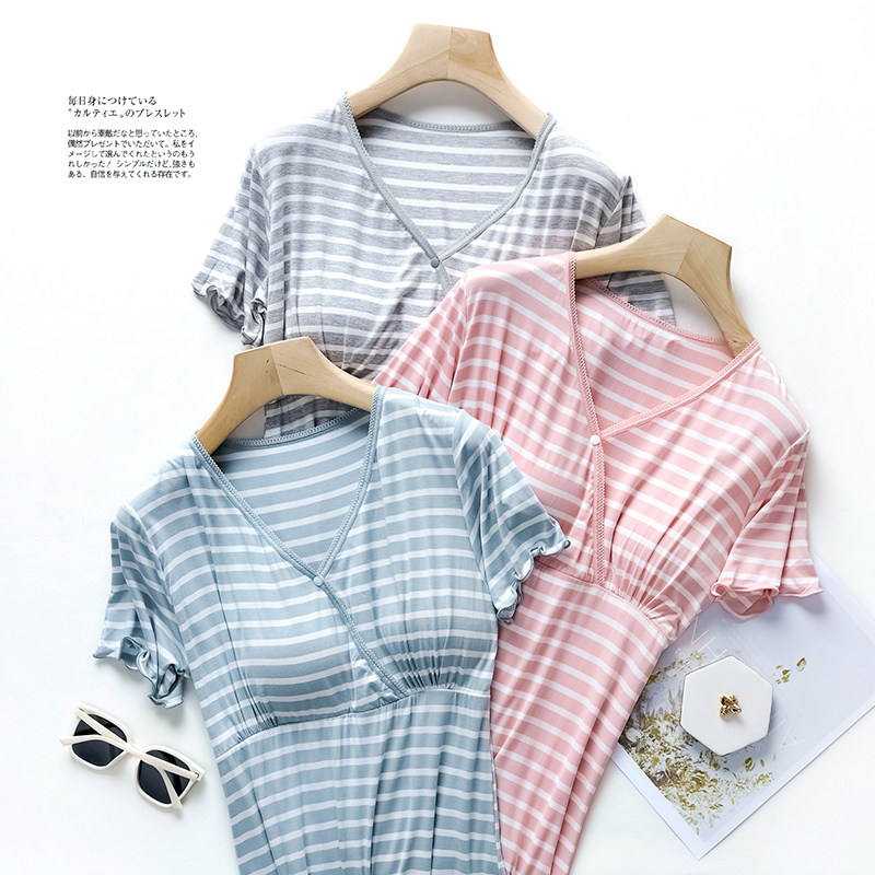 莫代尔孕妇睡衣夏季薄款哺乳睡裙女喂奶连衣裙产后大码月子服夏装