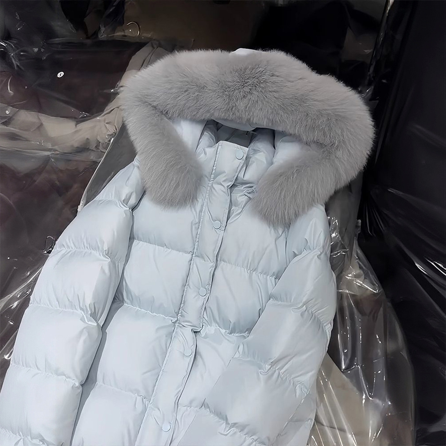 胖mm女装韩系浅蓝色加厚连帽棉服女冬季新款保暖设计感超好看外套