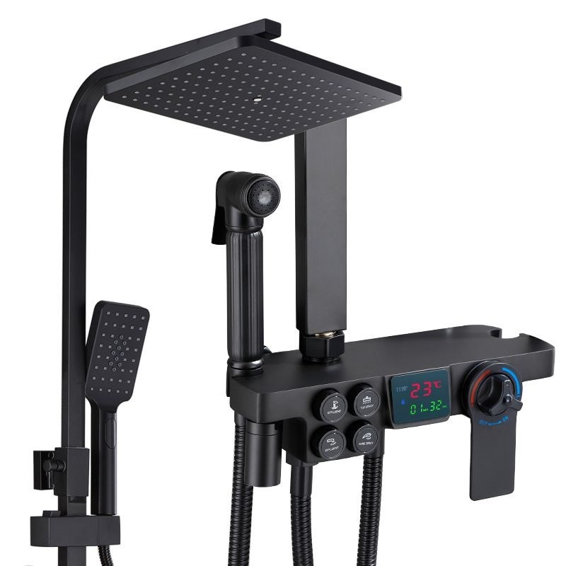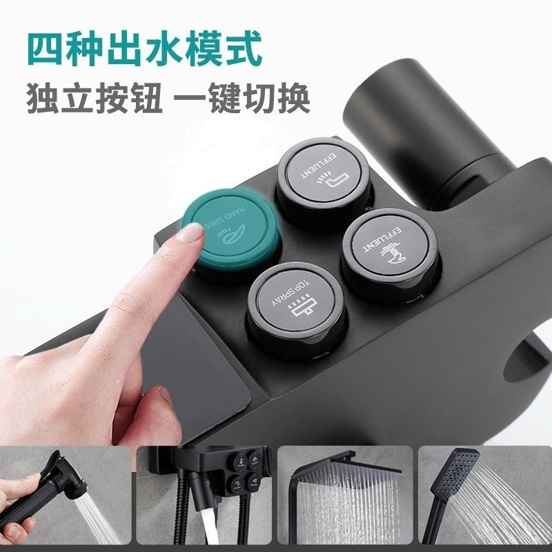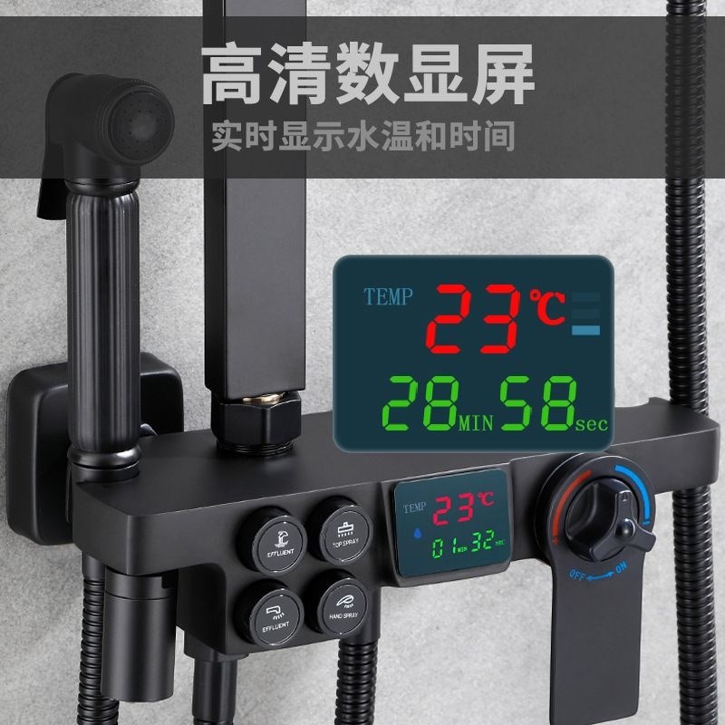 卫浴全铜淋浴花i洒套装 家用浴室黑色恒温淋浴器淋雨花洒喷头套装