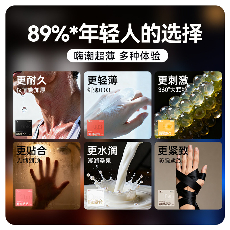 嗨潮全家桶避孕套高潮物理降敏快感男用延时持久装玻尿酸安全套tt