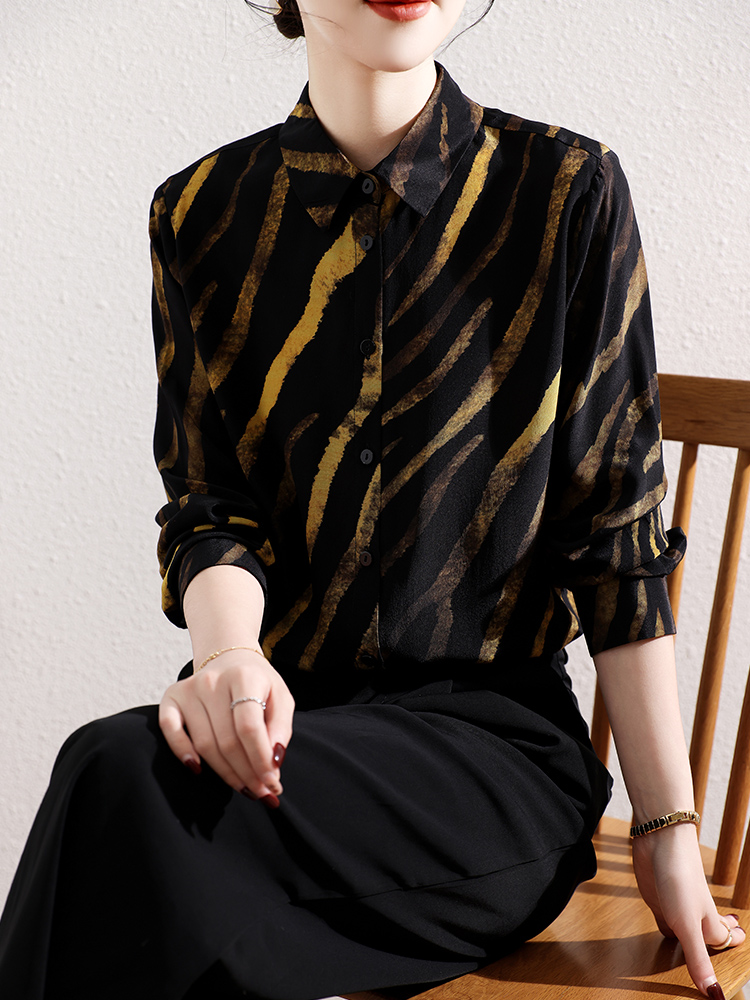 重磅真丝衬衫女长袖2025秋装大码宽松虎纹上衣高端印花桑蚕丝衬衣