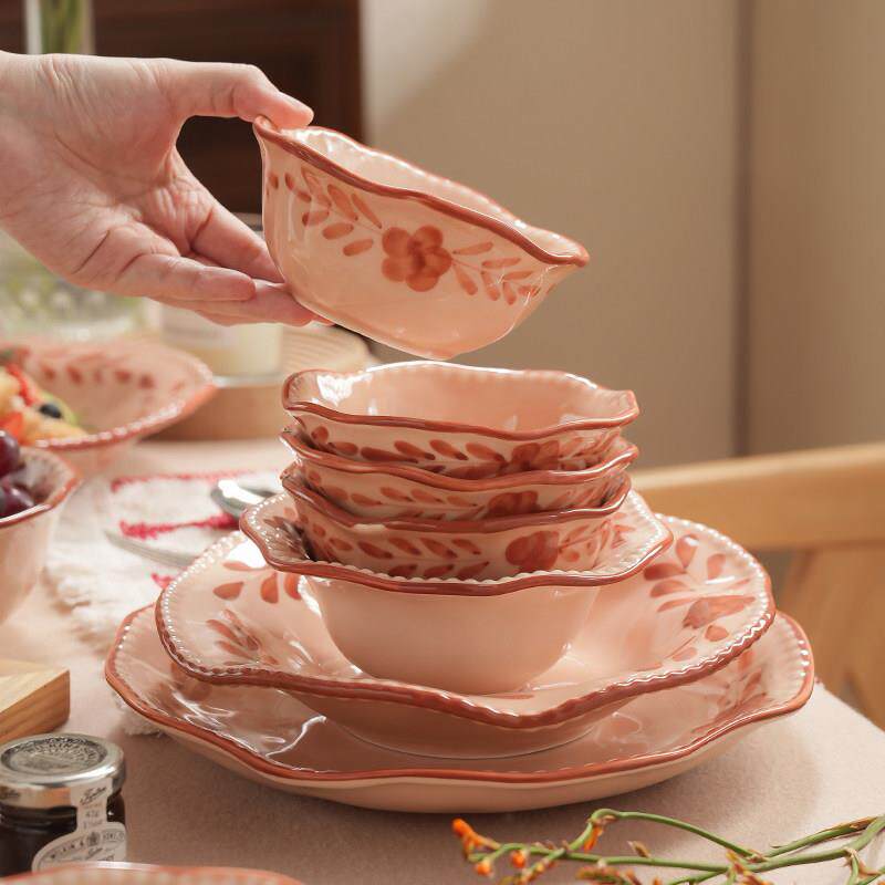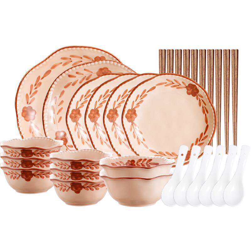 焦糖肉桂陶瓷碗碟瓷器套装家用法式餐具2025新款碗盘乔迁新居碗筷