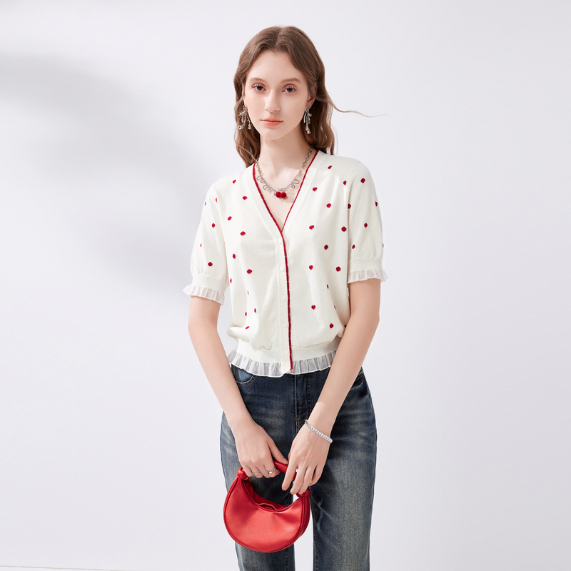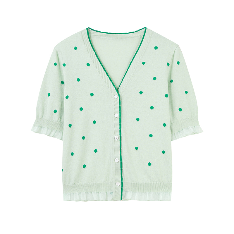 秋水伊人法式波点V领针织开衫女2025夏季新款女装设计感短袖上衣