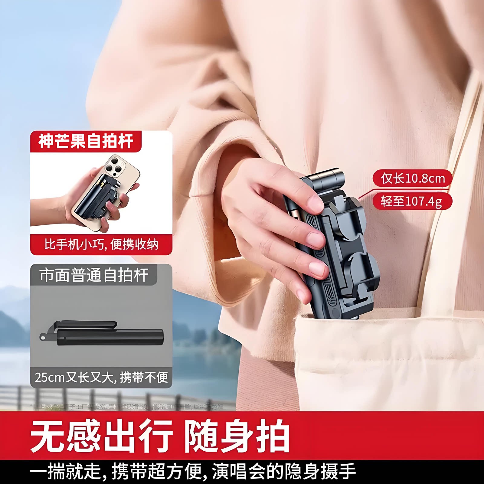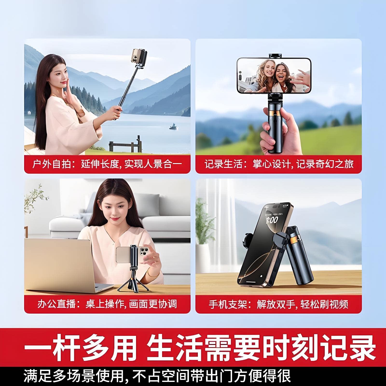迷你自拍杆2026新款落地三脚架手机拍照通用直播支架自拍神器360旋转手持旅游便携演唱会户外vlog拍摄四脚架