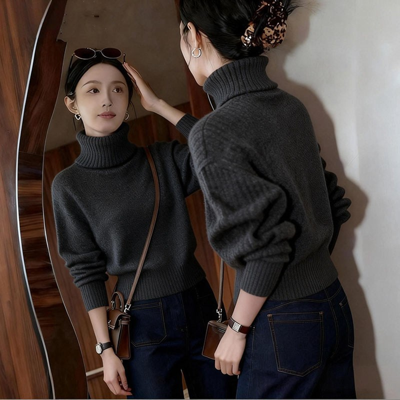深灰色高领加厚毛衣女2025秋冬穿搭韩版气质高腰短款长袖针织上衣