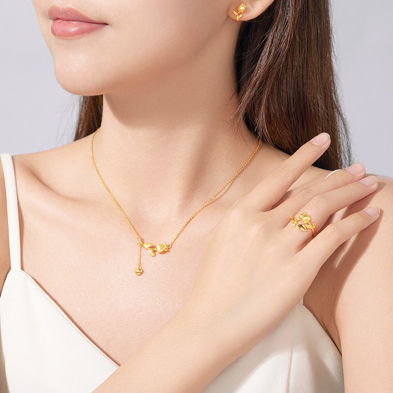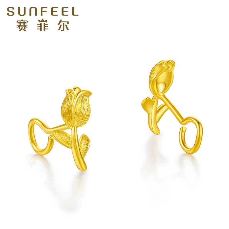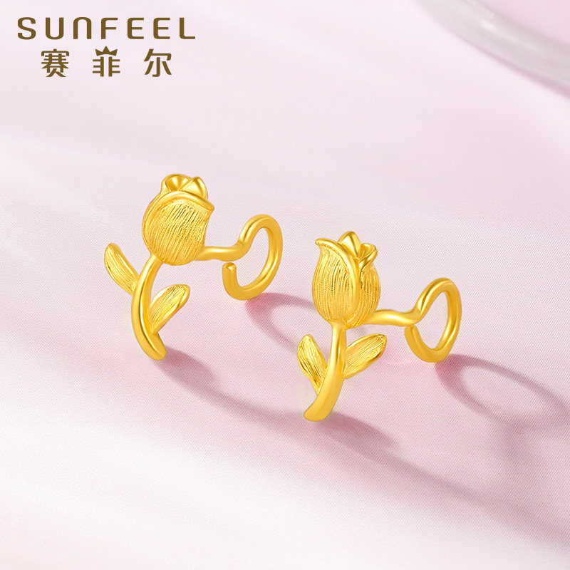 赛菲尔黄金耳环足金999.9郁金香耳圈浪漫花朵耳饰复古耳钉送女友