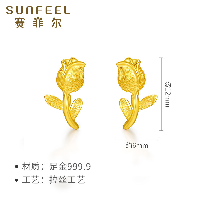赛菲尔足金999.9复古郁金香耳钉